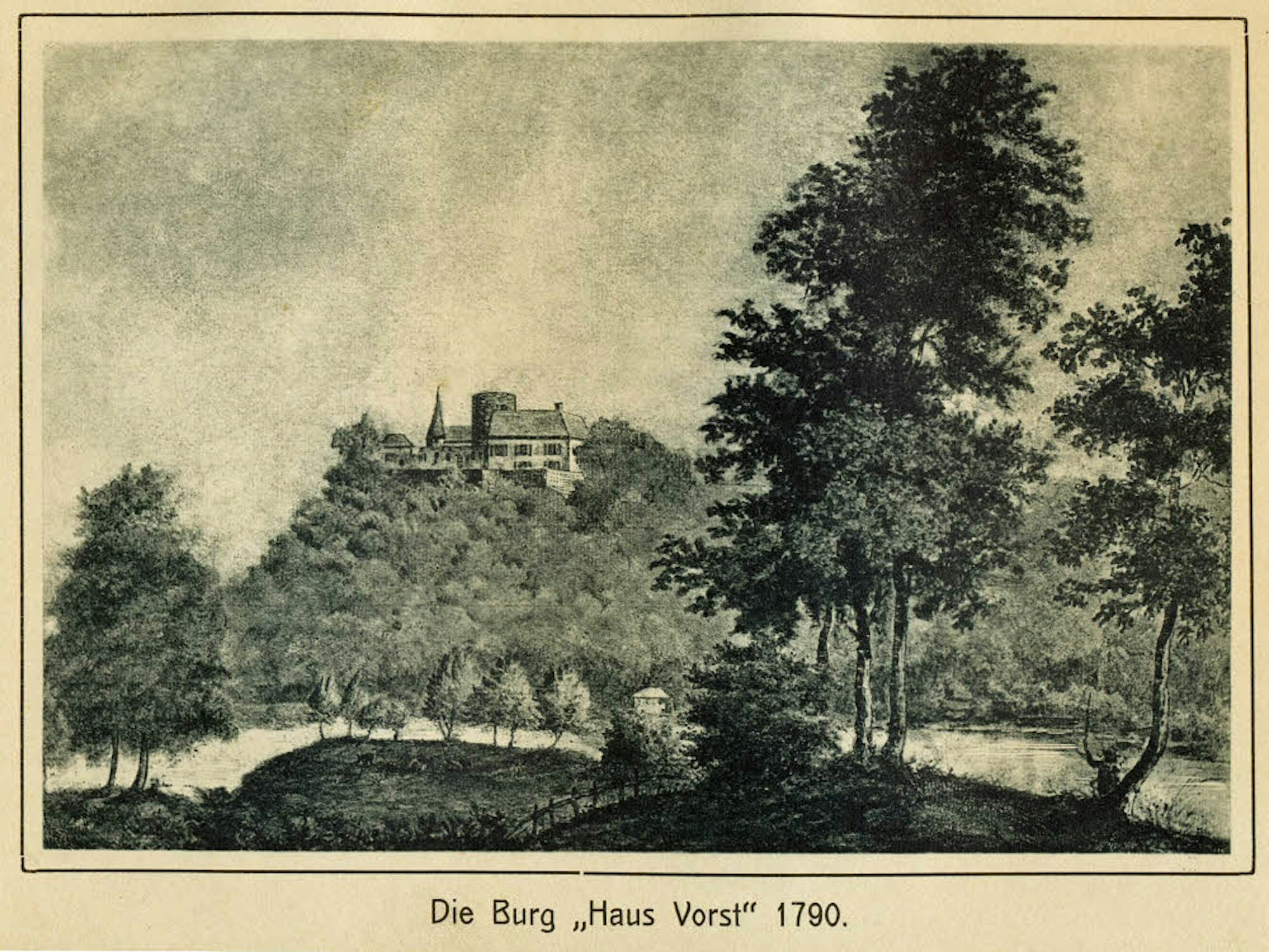 Echte Ritter haben auf der Burg ab Mitte des 13. Jahrhundert gelebt. Aus dem Jahre 1297 stammt eine urkundliche Erwähnung von „Hermanus de Foresto“. 1392 wird das Anwesen „Haus Vorst“ genannt, drei Jahre später „Schloss“. Zu dieser Zeit, vermutet Reinhold Braun, ist der Hof zu der befestigten Höhenburg ausgebaut worden, wie man sie heute noch kennt: „Es sollte wohl eine Schutzburg für den Grafen von Berg und Jülich vor Angriffen der Stadt Köln sein“. Adolf von Berg soll seinen Vater, Herzog Wilhelm von Berg, 1403 hier eingesperrt haben.
