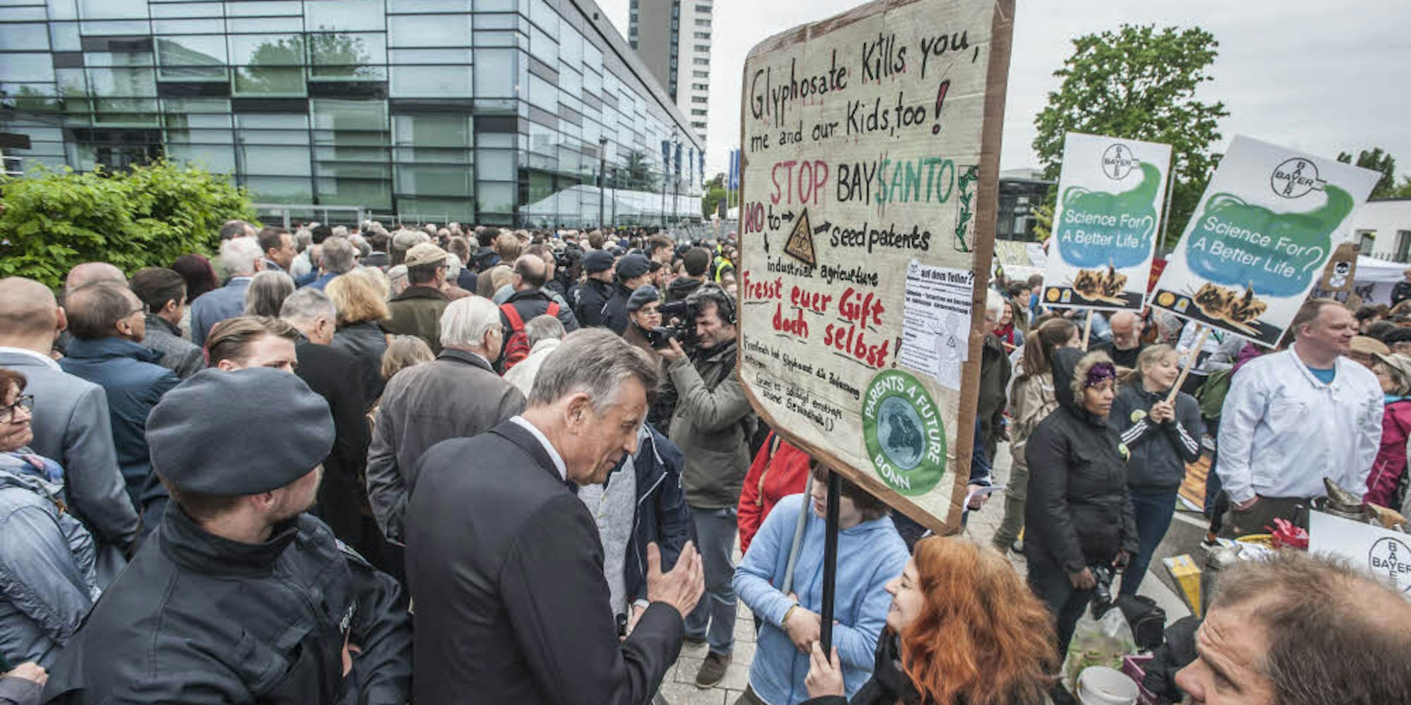 Bayers HauptversammlungDicke Luft drinnen und draußen