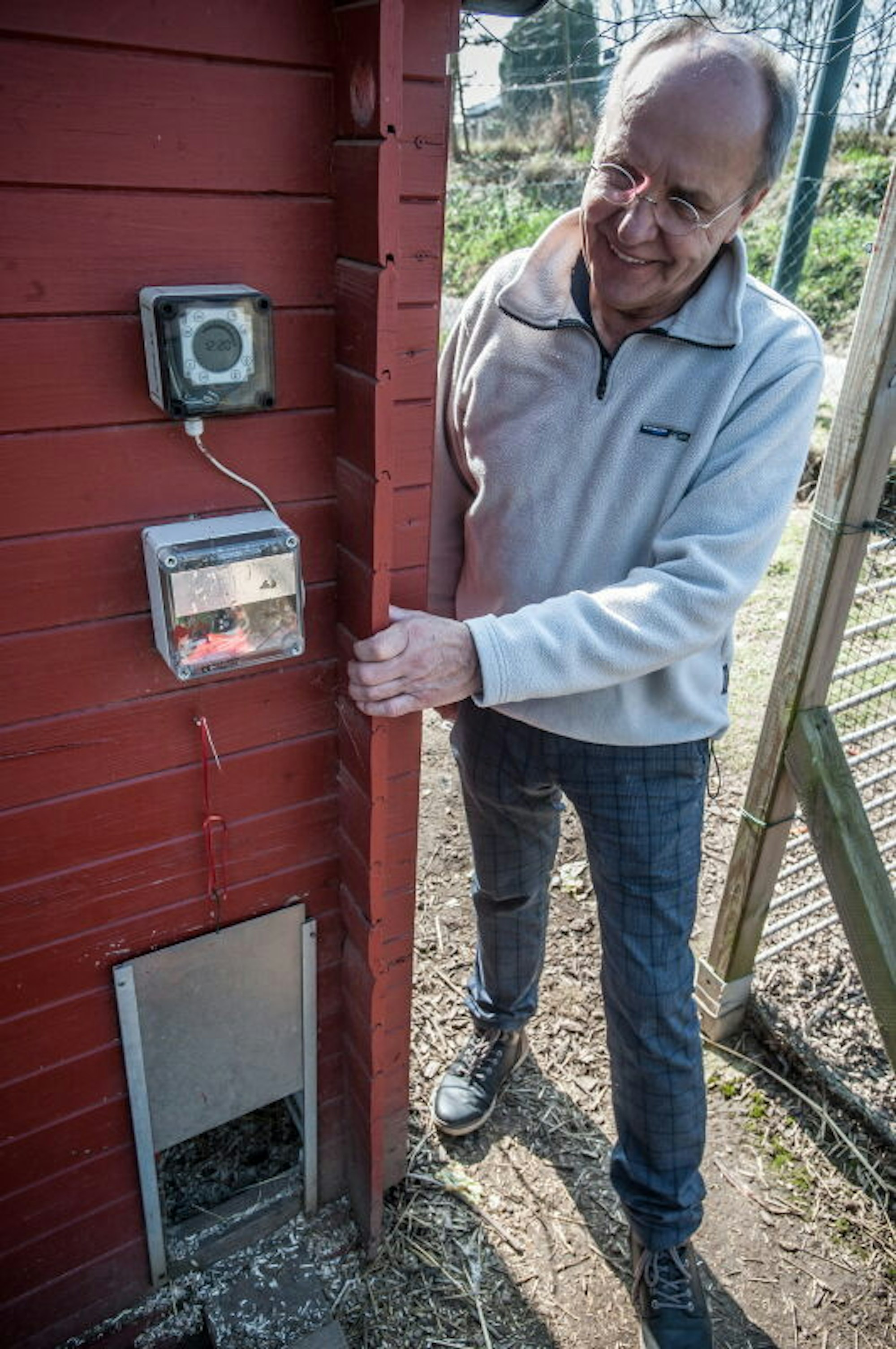 Die Klappe hat eine Zeitschaltuhr, eine Bastelarbeit von Siggi Dworak.