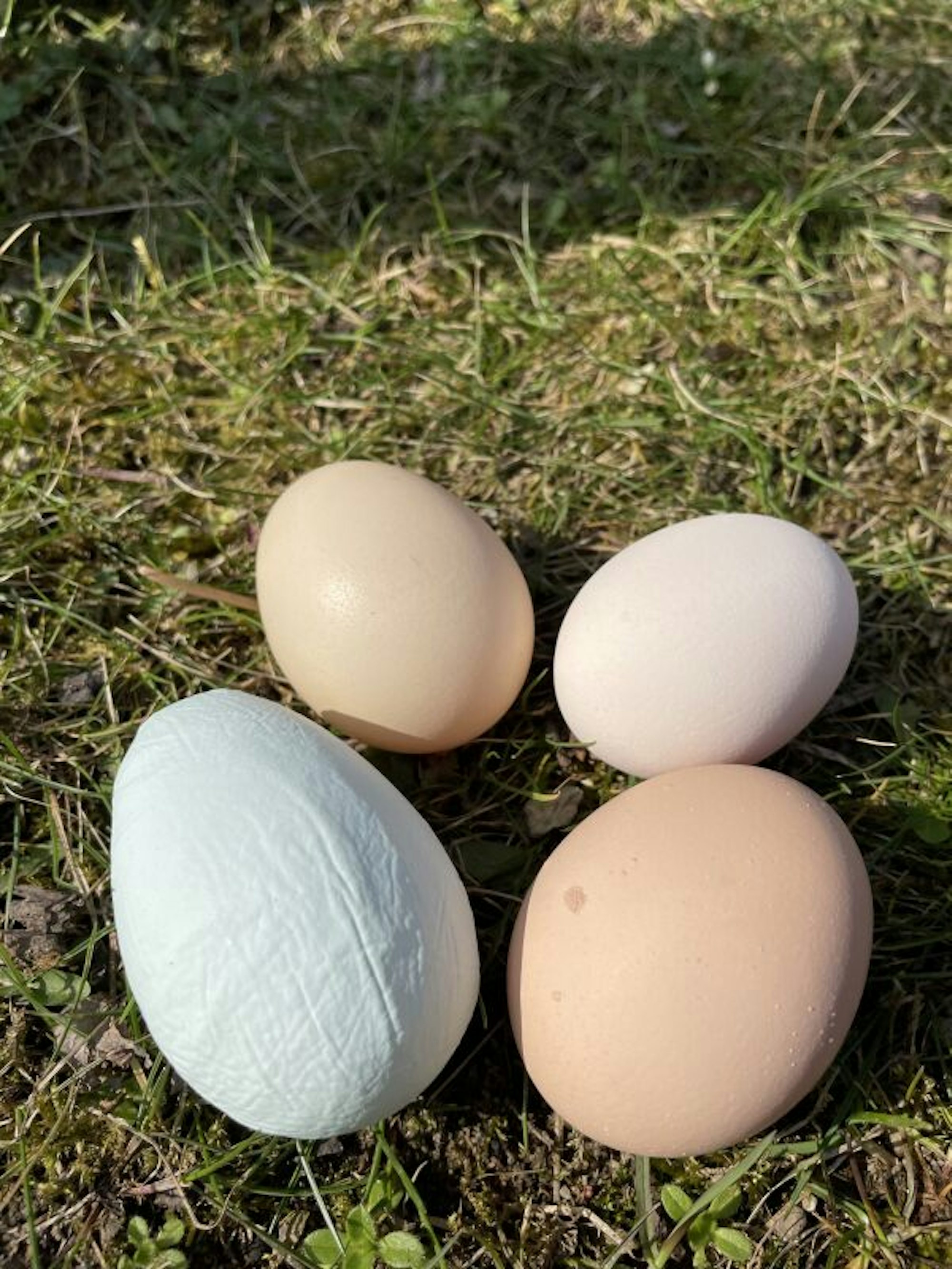 So kann Artelt nun jeden Tag auf Eiersuche gehen, zwischen zwei und acht Eier findet er in den Nestern. Und da alle seine Hennen unterschiedliche Rassen sind, haben auch alle Eier verschiedene Farben – auch ein Grünleger ist dabei. So sieht die Beute an diesem Tag aus wie ein Korb bunter Ostereier. Ganz ohne Farbe.