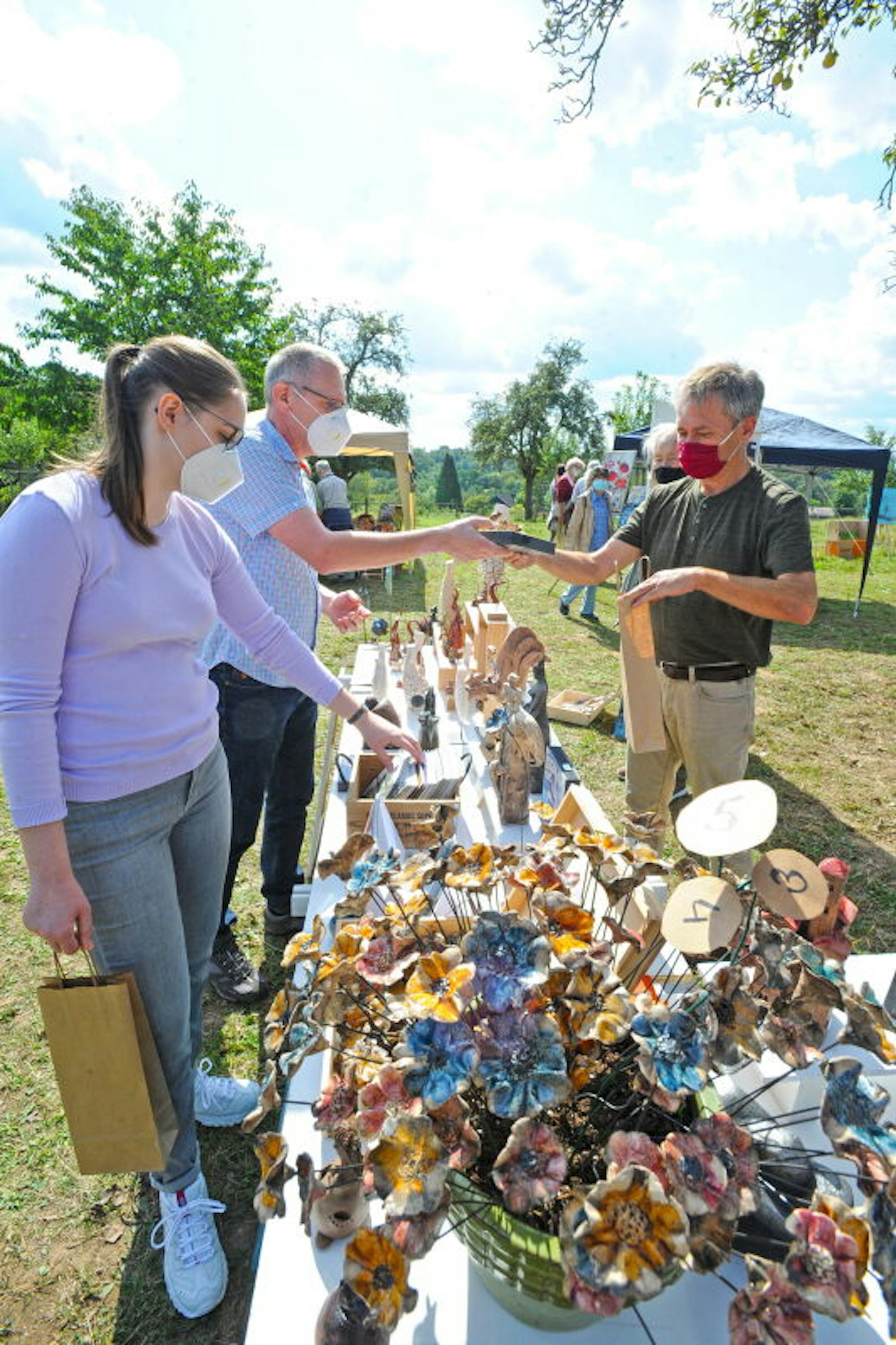 Idee dank Rotwein und CoronaReger Zulauf beim Kunstbasar auf Obstbaumwiese
