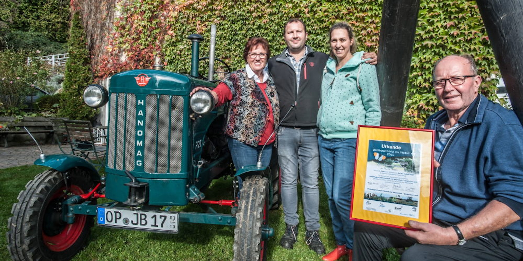 Die Familie Bakker mit der Auszeichnung als „Hof der Vielfalt“.