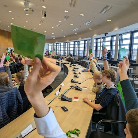 Der Mensaverein bereitet täglich von Montag bis Donnerstag 720 Essen zu. Drei verschiedene Essen sind im Angebot, auch ein vegetarisches ist immer dabei. Die Schülerinnen und Schüler zahlen kein einzelnes Mittagessen, sondern schließen ein Schuljahresabo ab. „Das gibt uns Planungssicherheit“, erläutert die Mensavereinsvorsitzende. Aktuell ein großes Thema ist in der Mensa der Gesamtschule die Umstellung auf Bioprodukte. 26 Prozent der Angebote der Mensa entsprechen diesem Standard. Außer-Haus-Caterer müssen bundesweit von 2028 an 30 Prozent Bioprodukte anbieten. Kober-Stegemann wies darauf hin, dass die Landesregierung das Thema mit der Initiative „NRW kocht Bio“ in Modellregionen vorantreibe. Der Mensaverein habe bereits durch ein „Bio Coaching“ von der Initiative profitiert.