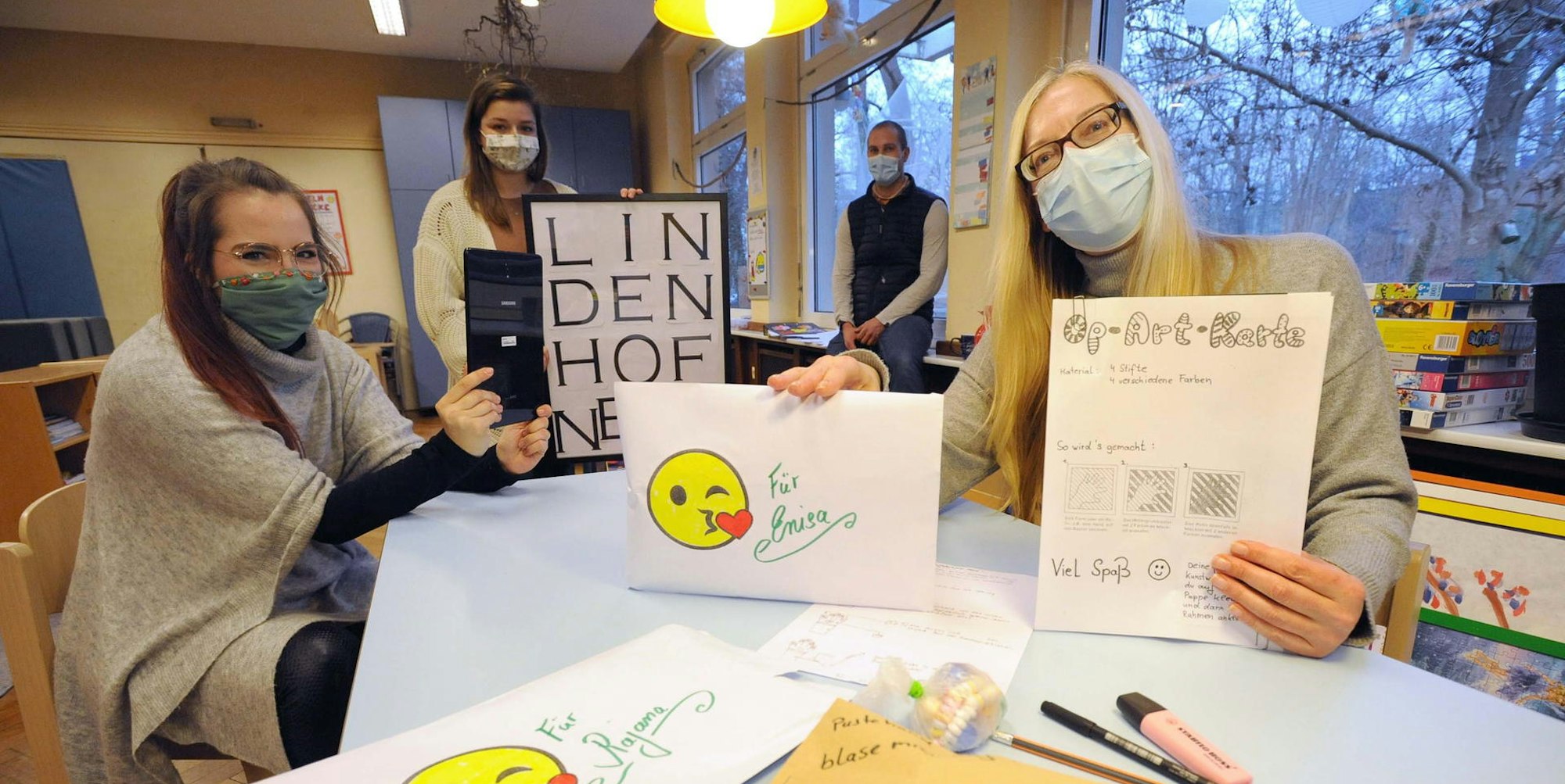 Die Mitarbeiterinnen des Jugendzentrums Lindenhof wollen zeigen, dass sie für die Kinder da sind und haben kreative Ideen zur Beschäftigung im Lockdown.