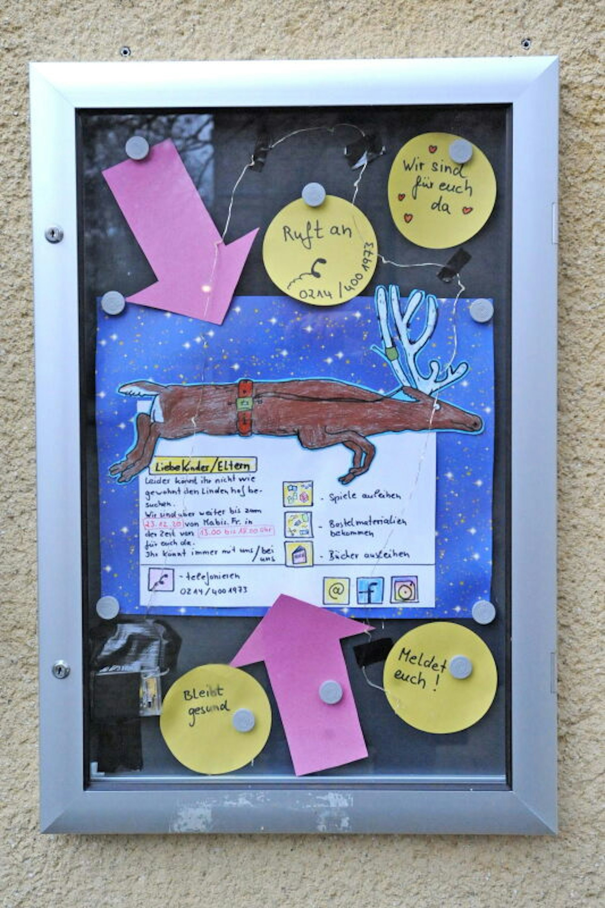 Ruft an, wir sind für Euch da, heißt es im Aushang vor dem Lindenhof.