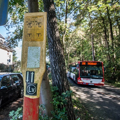 Ein gutes Jahr, bevor die Rodungsarbeiten voraussichtlich im Winter 2020 beginnen sollen, haben Landvermesser die sprichwörtlichen Pflöcke in den Waldboden nahe der Waldsiedlung geschlagen und den Verlauf markiert. Kurz darauf soll das 90-Zentimeter dicke Rohr 1,20 Meter tief unter der Erde verschwinden.