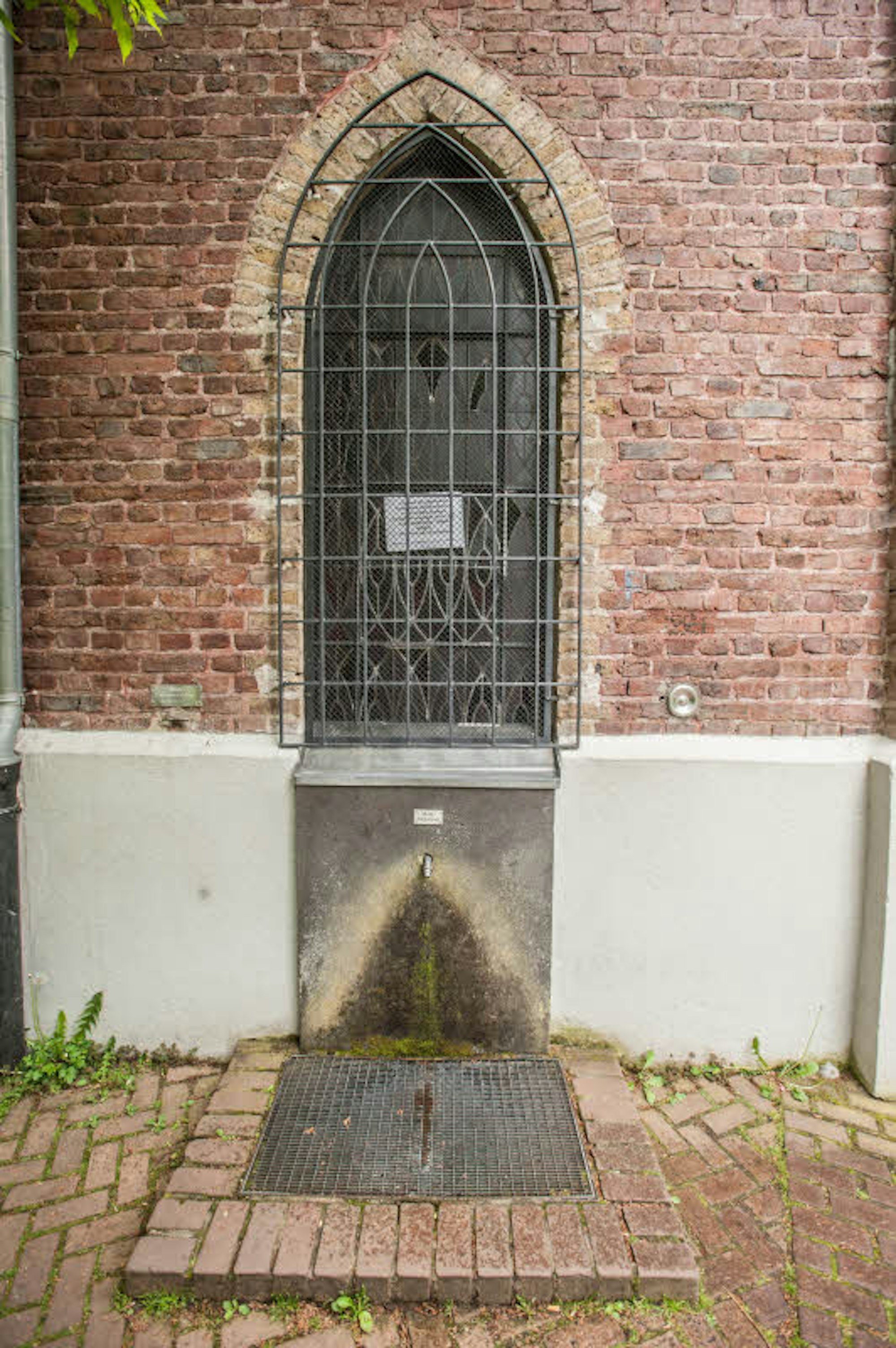 Leverkusen – Christian Kaltenbach, der Küster von Schlebusch, öffnet die kleine Holztür, die in den schmalen Raum hinter dem Holzaltar in der Gezelinkapelle führt. Eine kleine Sakristei, dort ziehen sich sonst die Pfarrer um. „Hier sehen Sie es“, er deutet auf eine Skala, wie an einem Thermometer, an der ein über einen Seilzug gesteuerter Zeiger fast ganz oben den Wert 16 anzeigt. „Das heißt, wir haben heute 16 Zentimeter Wasser im Brunnen,“ sagt Kaltenbach und zieht die Stirn in Falten.