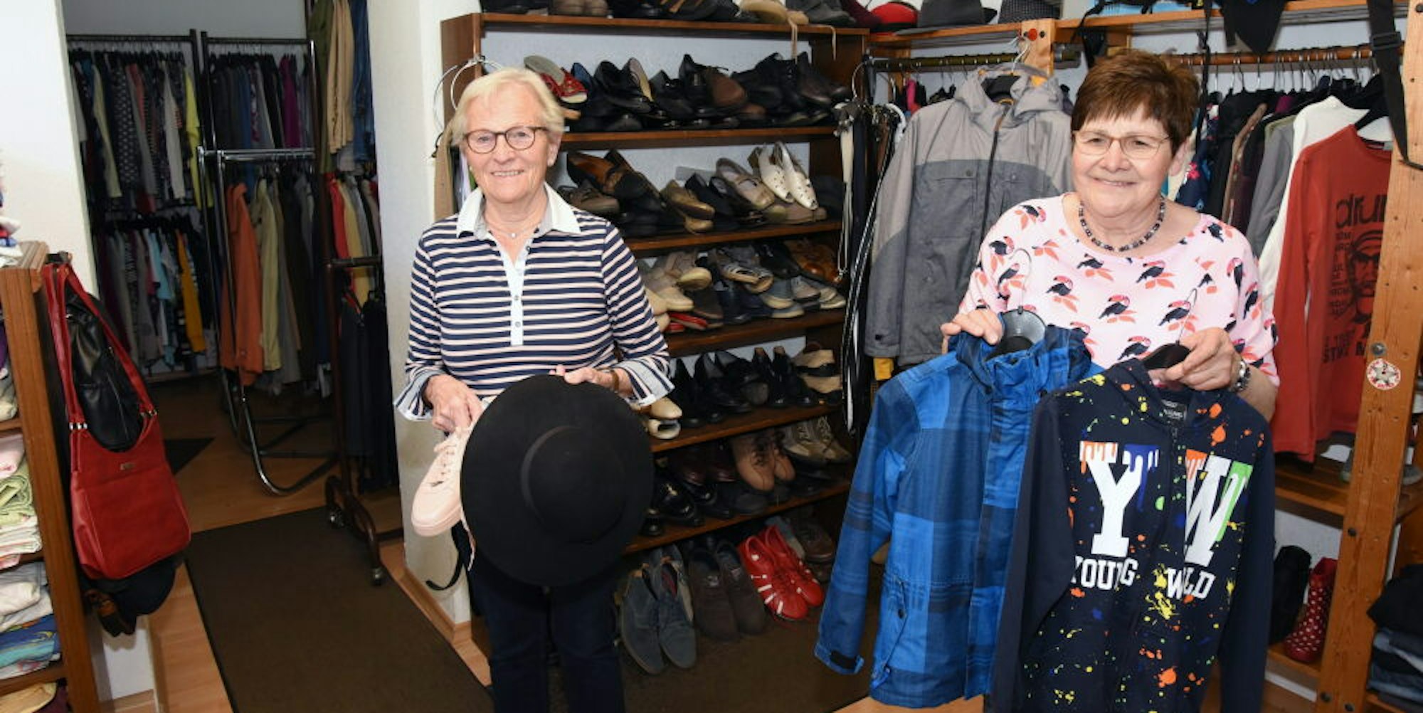 „Im Frühjahr sind T-Shirts der Renner, ab Ende Juli holen wir aber schon wieder die Wintersachen vor“, verrät Agnes Ahles, die Vorsitzende der aktuell 16 ehrenamtlichen Helferinnen. In der Fundgrube wird sortiert, gesichtet, weggepackt und wieder hervorgeholt, was das Zeug hält.