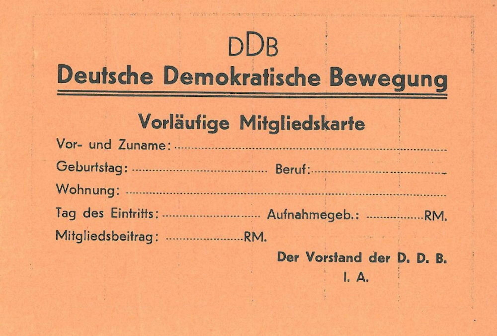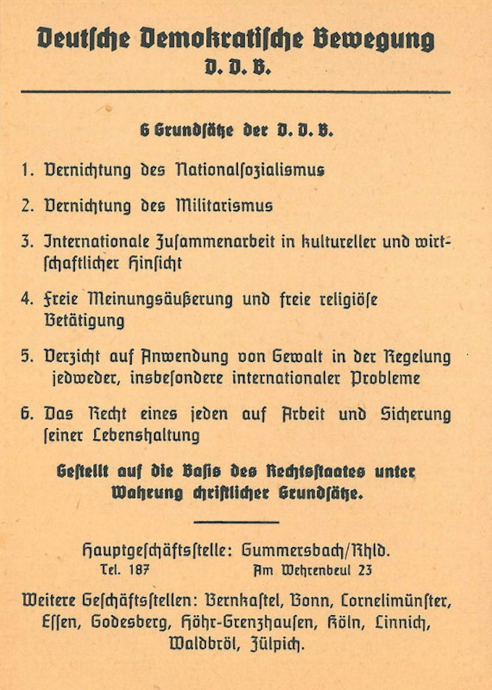 - Es war die erste politische Partei im besetzten deutschen Westen: die Deutsche Demokratische Bewegung.