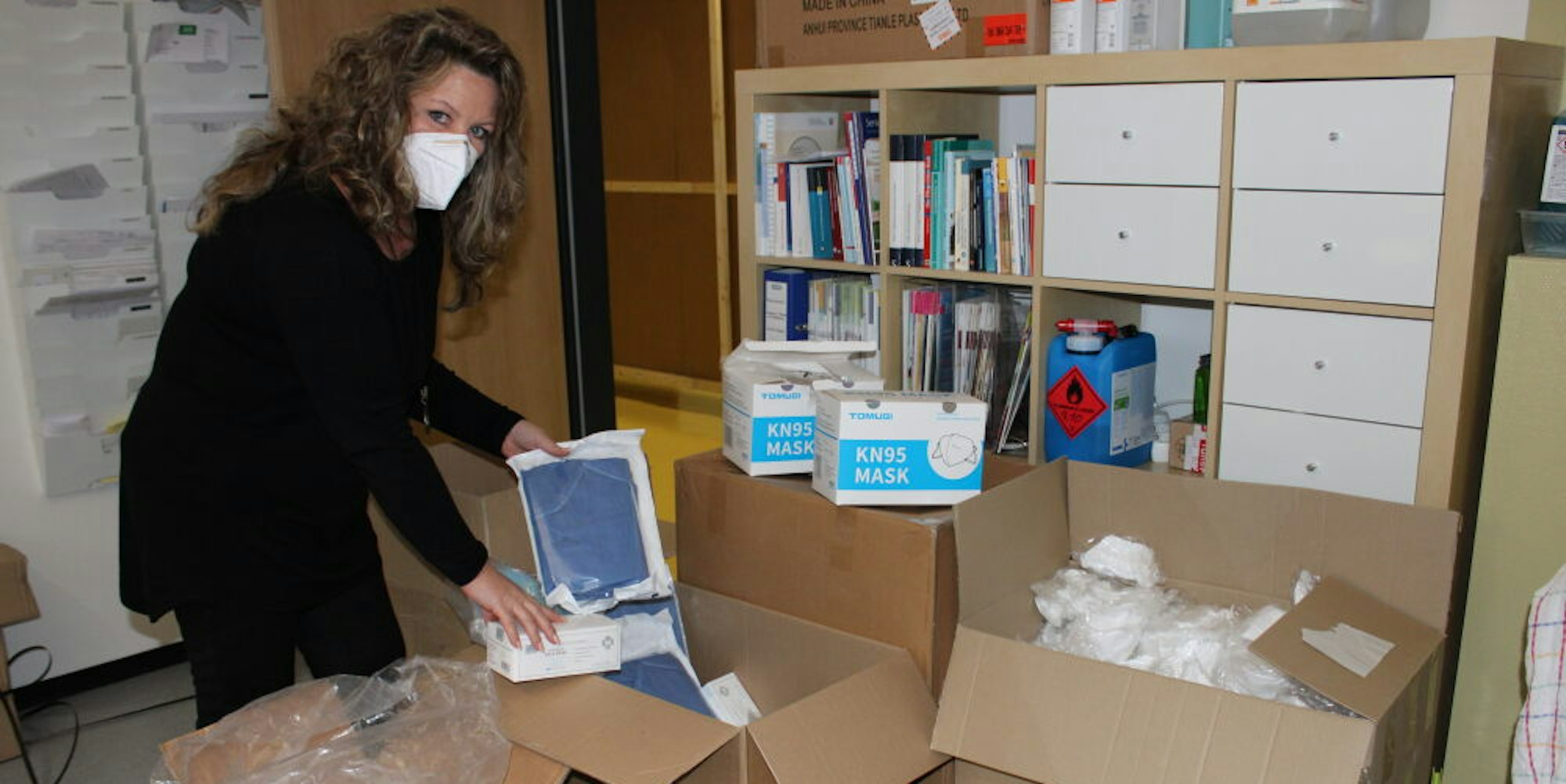 Improvisiert, aber Teil des Corona-Test-Konzepts: OGB-Heimleiterin Iris Prangenberg-Röntgen in ihrem Büro, das teilweise in ein Warenlager umfunktioniert worden ist.