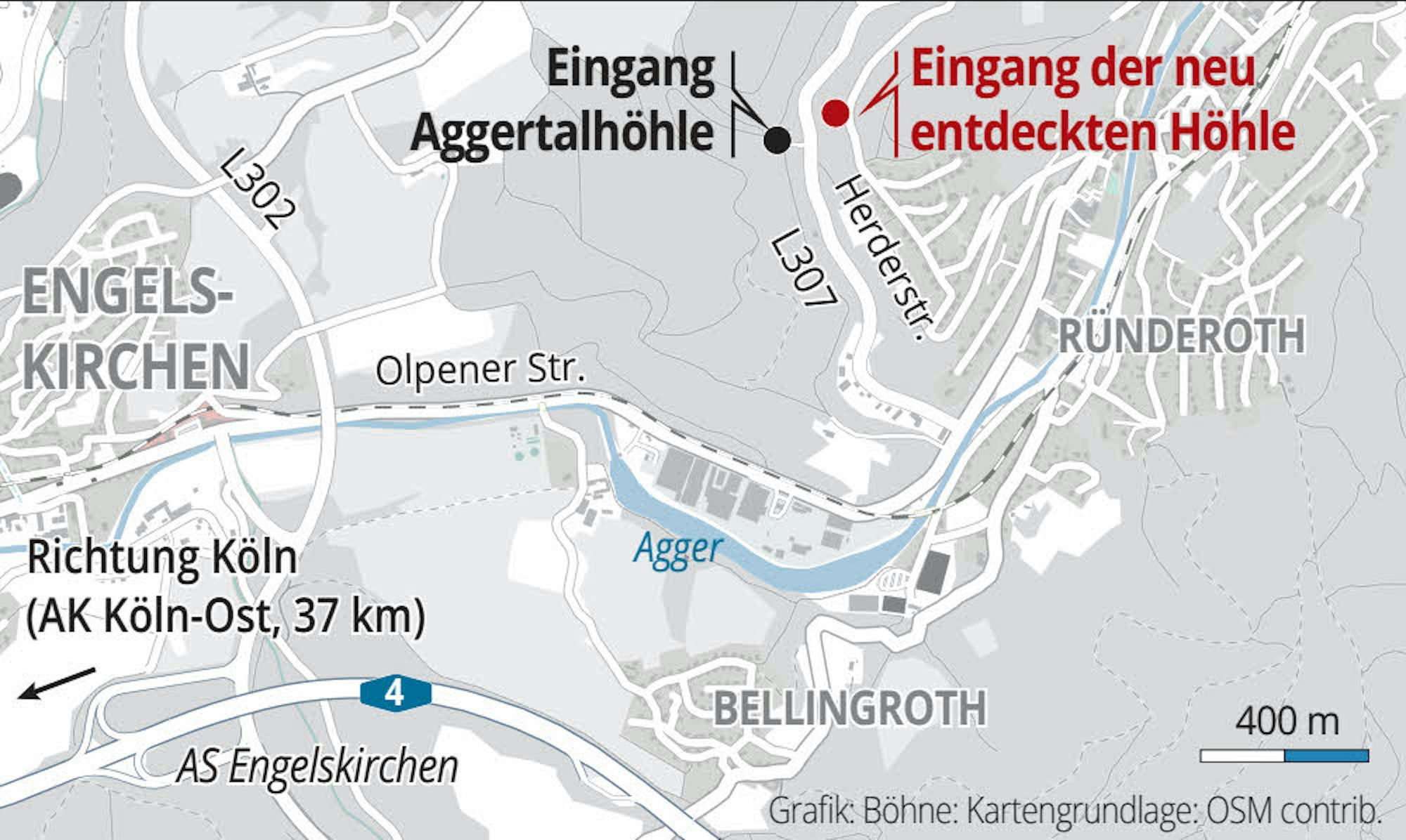 Gar nicht weit entfernt von der schon lange bekannten Aggertalhöhle, die besichtigt werden kann, erstreckt sich tief unten im Ründerother Mühlenberg ein Höhlensystem, dessen ganzes Ausmaß die Forscher noch gar nicht abschätzen können.