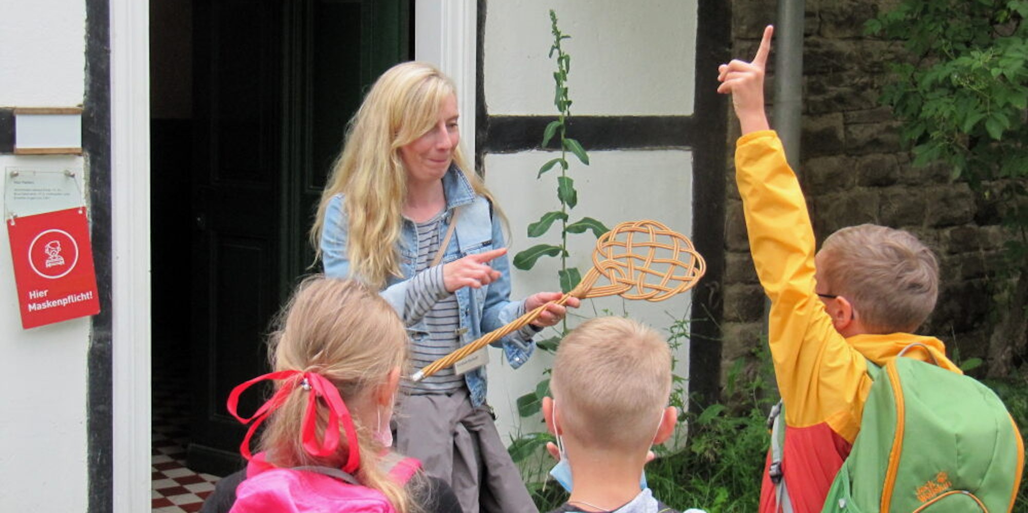 Die anderthalbstündige Quizreise durch alle Baugruppen fand bereits zum zweiten Mal statt. In der Schmiede präsentierte Osthoff ein Klaueneisen, im Bandweberhaus knobelten die Kinder an einer Luftpumpe, die einst feinen Staub vom Sonntagsanzug entfernte. „Es gibt einen großen Unterschied zwischen den Kindern. Manche erkennen fast alle Gegenstände, andere haben so etwas noch nie gesehen“, so Osthoff, die mit der Gruppe in dieser Woche hochzufrieden war.