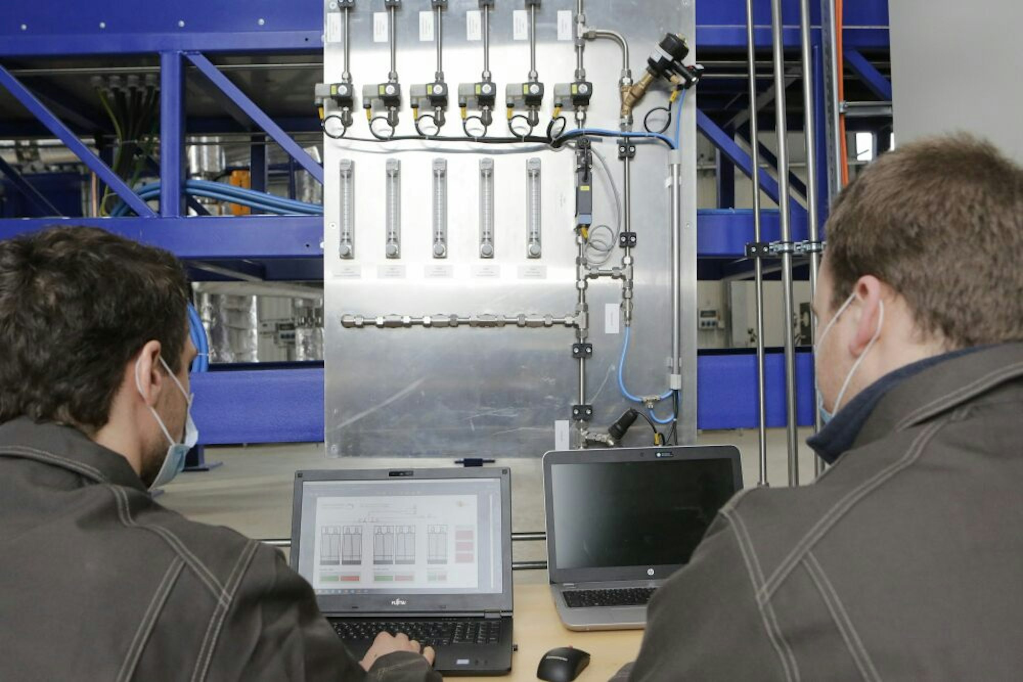Studierende der TH Köln im neuen thermo-chemischen Forschungszentrums der TH Köln auf Metabolon bei Lindlar.