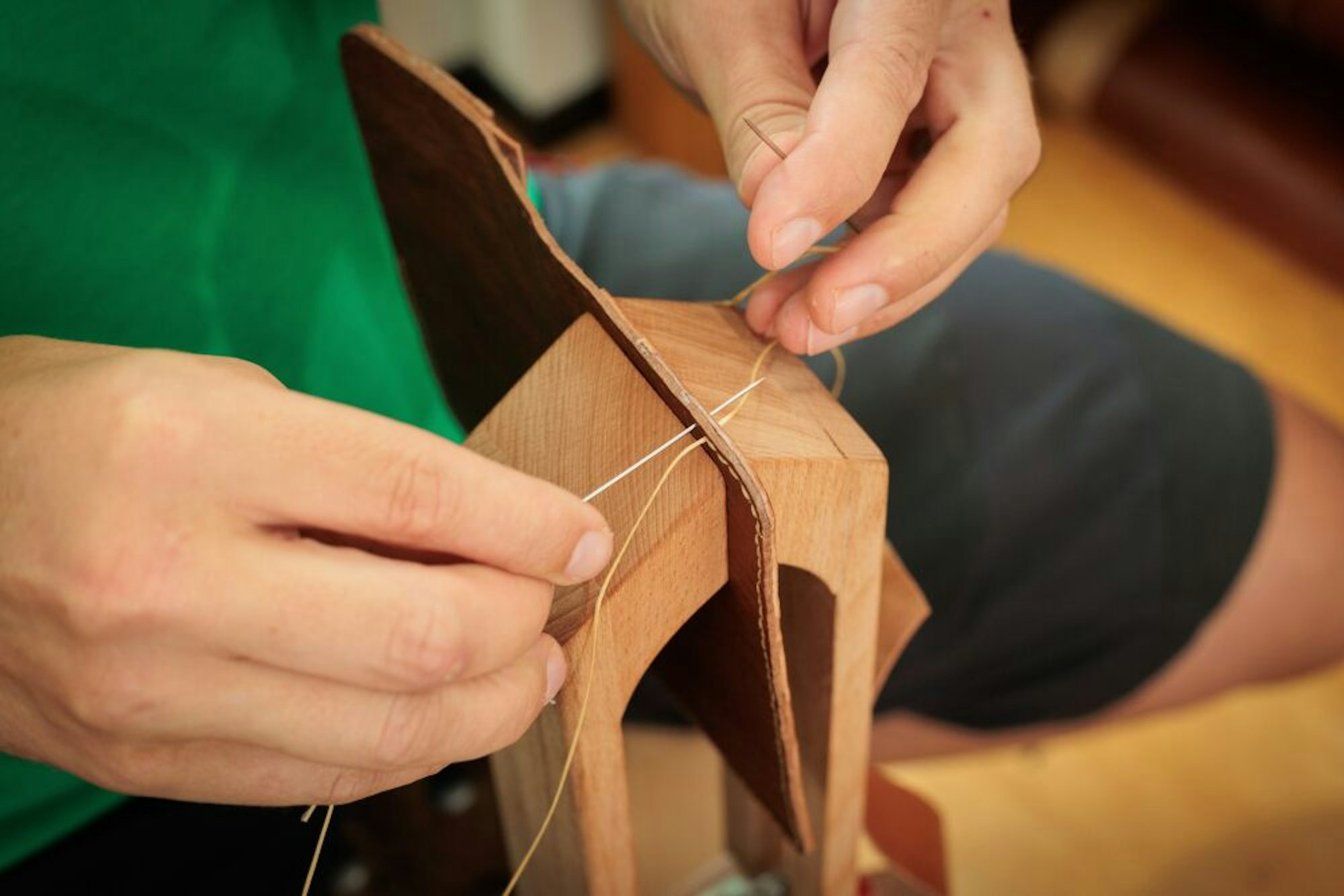 Oliver Neufurth bringt im Laufe des Gesprächs auch das Thema Nachhaltigkeit zur Sprache. Denn einen alten Schatz zu erhalten, statt immer neu zu kaufen, ist sinnvoll. Auch Umweltschutz und Tierwohl hat er durchaus im Blick. Das Ziegenleder, das er nutzt, stammt aus Nordafrika. Massentierhaltung bei Ziegen gebe es nicht, berichtet er und sagt: „Das Leder wird mit pflanzlichen Stoffen gegerbt und von einer Firma vertrieben, die nachhaltige Prinzipien in ihr Geschäftskonzept integriert hat.“
