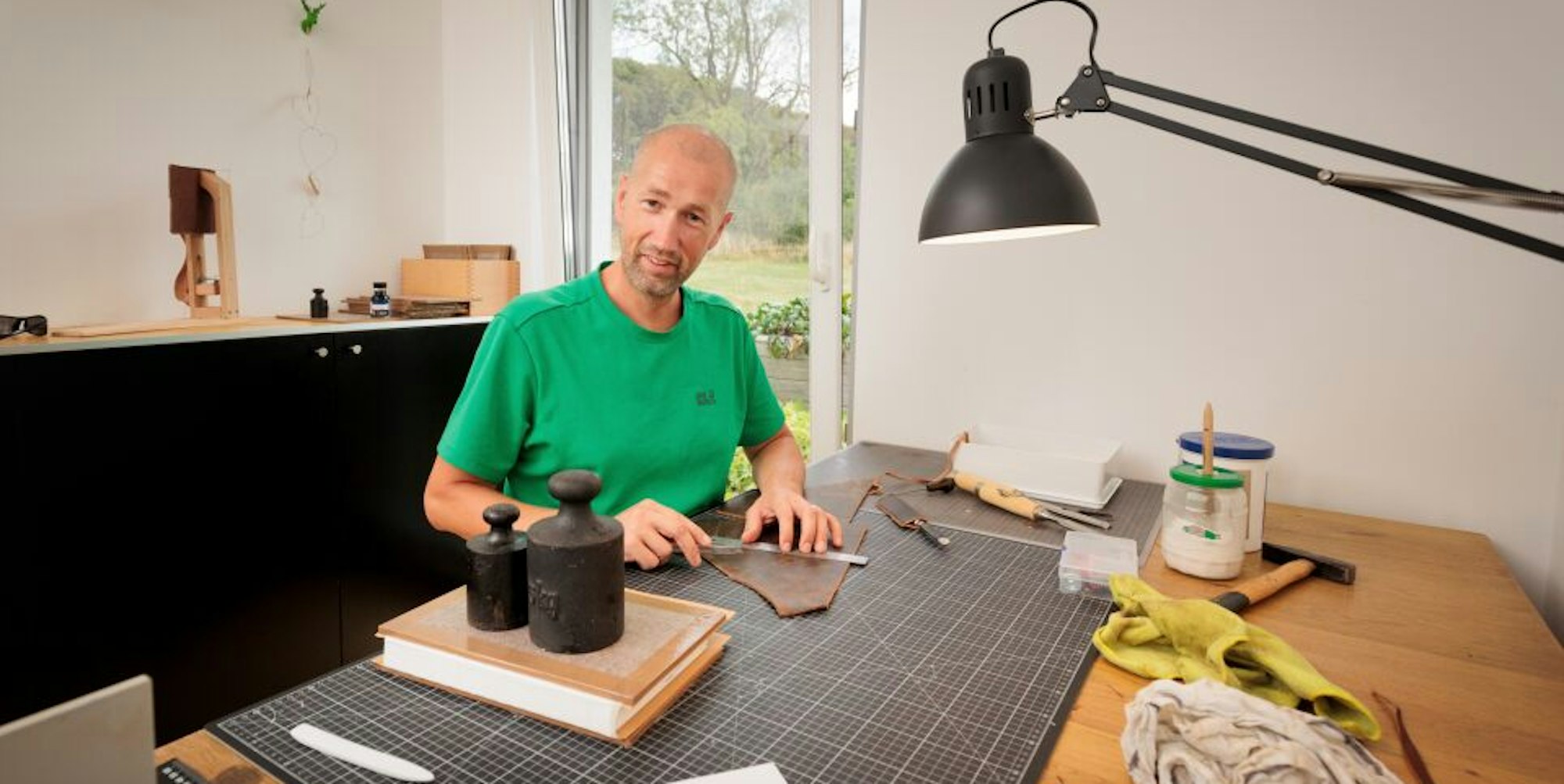 Ein Buch in Leder gebunden: Oliver Neufurth hat die alte Handwerkskunst als Leidenschaft für sich entdeckt.