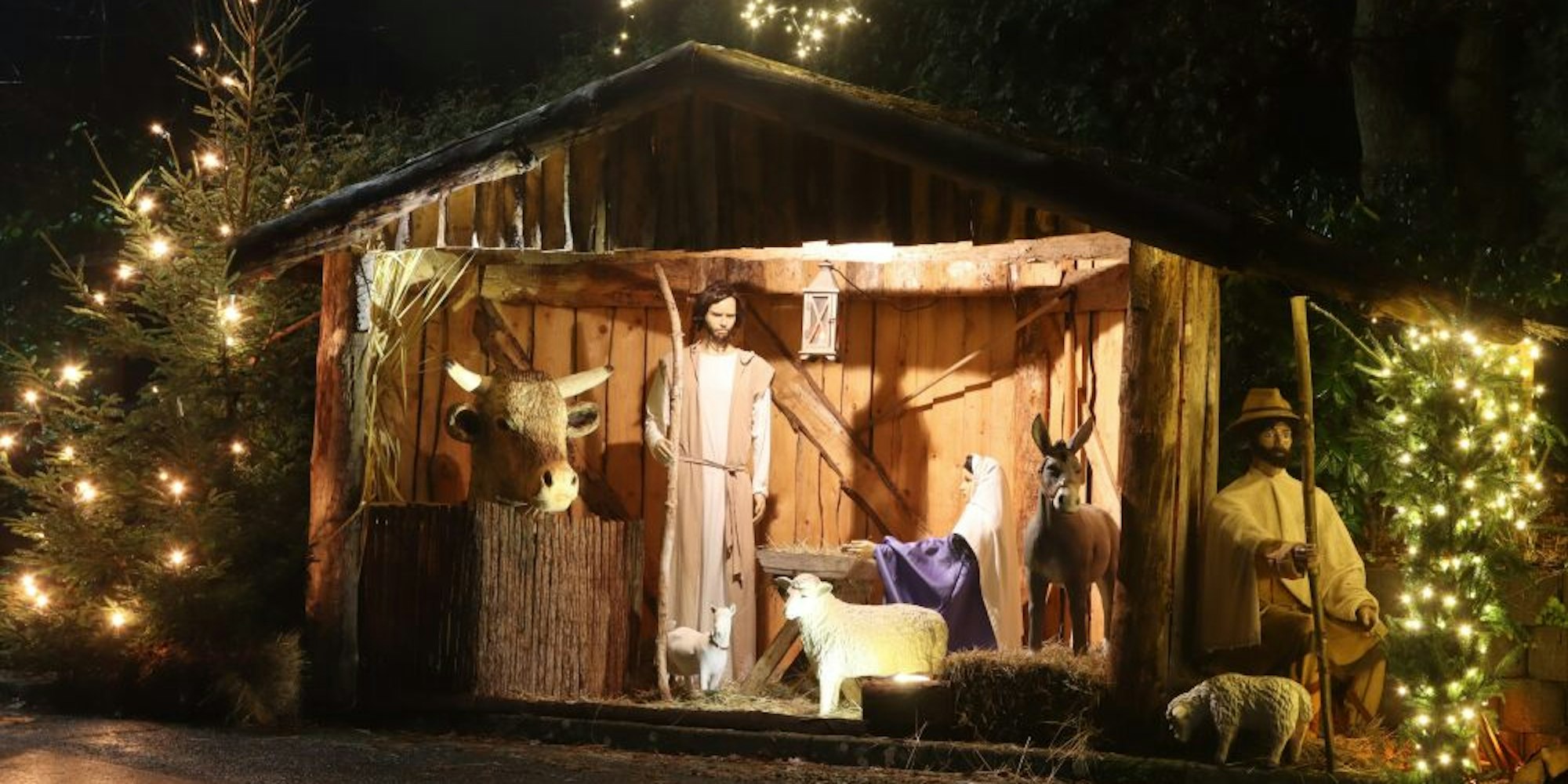 Die Figuren dieser Krippe sind lebensgroß. Das Christkind kommt erst morgen in die Wiege.