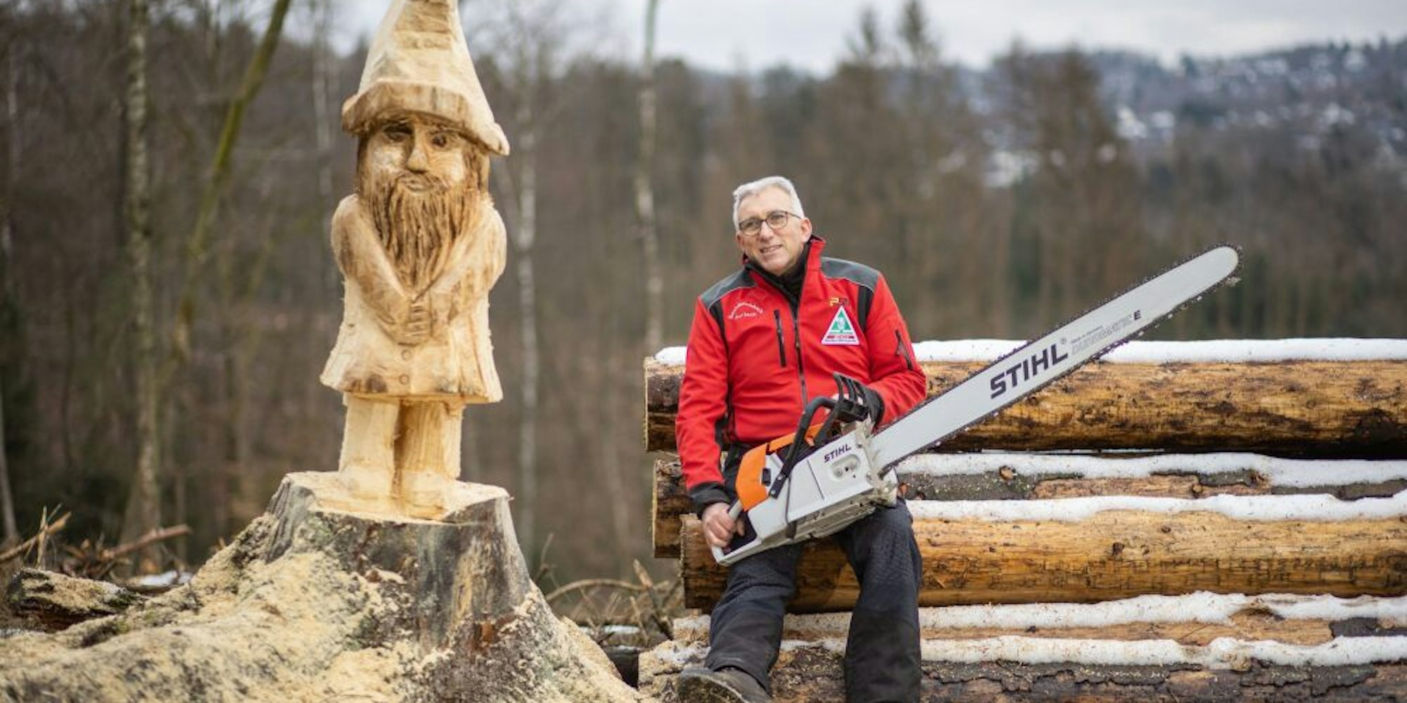 Die Holz-Leidenschaft hat er nicht vom Herrn Papa: „Mein Vater kann nur mit dem Fuchsschwanz sägen.“ Aber der Opa, Invalide des Ersten Weltkriegs, hat sogar von der Schnitzerei leben können. Daher das Talent, da ist er sich sicher. Aber: „Ich kann es immer noch nicht.“