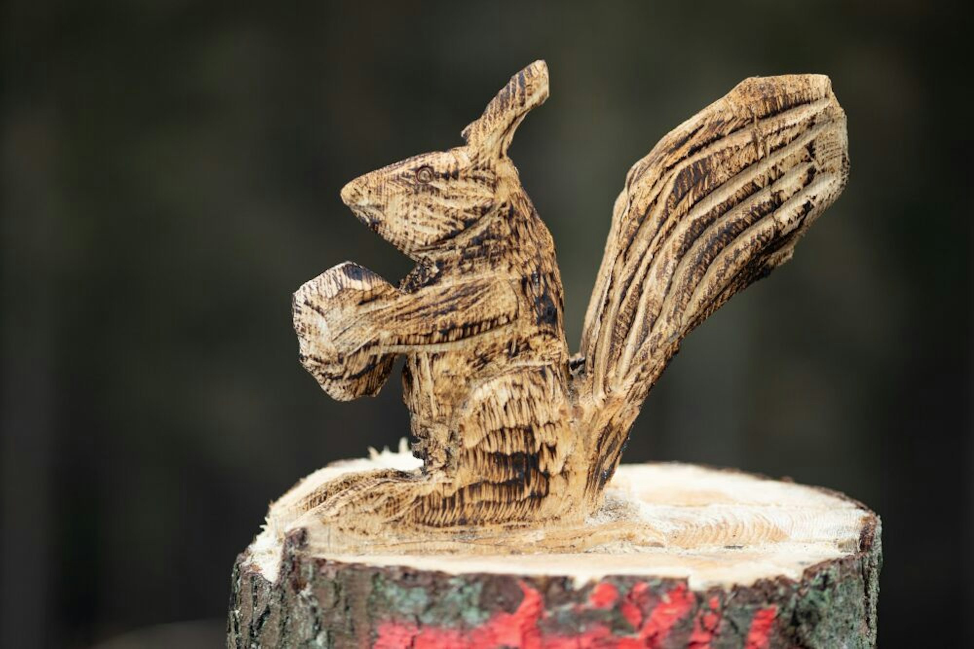 Schmidt erkannte sofort seine Aufgabe. Er holte seine Säge und gestaltete die Stümpfe mit sicherem Schnitt zu hölzernen Mahnmalen. Hauchte dem Abgestorbenen neues Leben ein. Eine Eule wacht jetzt mit großen Augen über den Kahlschlag. Ein ernster Waldgeist schaut wie aus dem Inneren des Baumrestes auf die Wüstung, während obenauf ein Eichhörnchen knabbert, als wäre nichts geschehen.