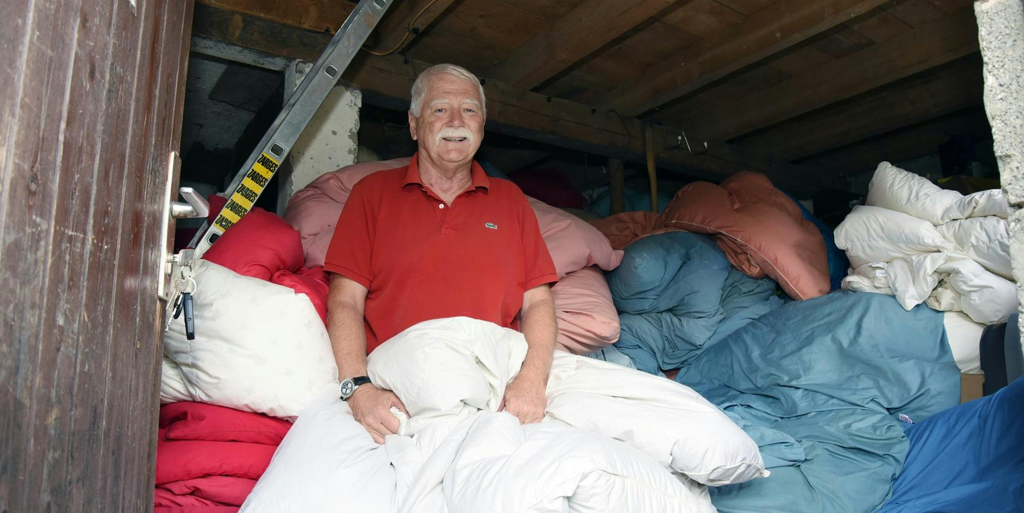 Dort ist man dankbar für das Altmaterial. Die Federn werden gereinigt und wiederverwendet und machen bis zu 30 Prozent der neuen Füllungen aus. Immer wenn er eine Tonne Federbetten gesammelt hat, kommt die Firma mit einem Kleinlastwagen nach Wiehl-Bomig, um alles abzuholen: Dort nutzt Brüning eine Scheune, die einst seinem Großvater gehörte, als Lagert. Pro Kilogramm zahlt das Unternehmen einen Preis von einem bis 1,20 Euro.