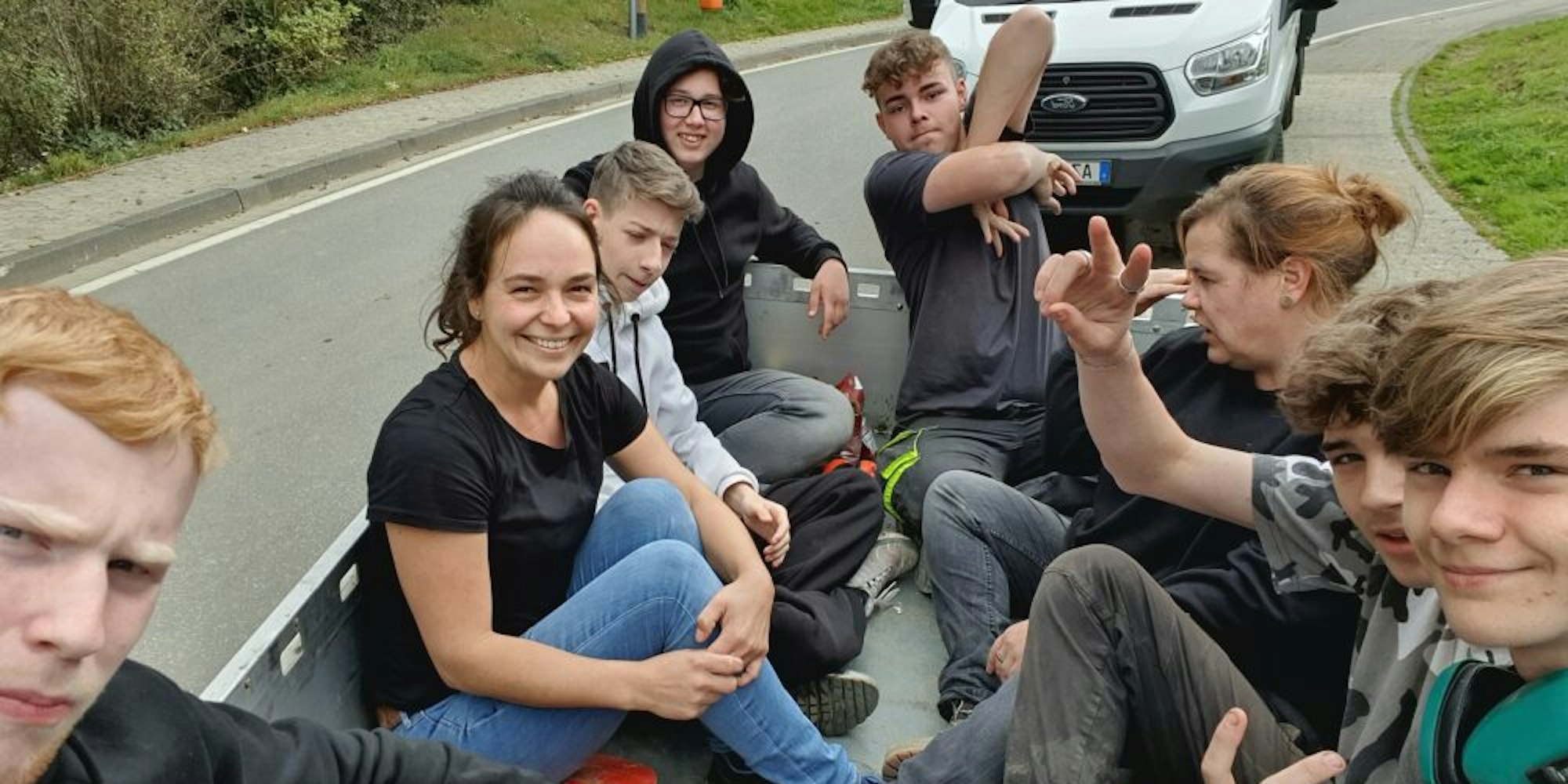 Die Gruppe zeltete im Garten des Onkels, erhielt Verpflegung beim Helferessen an der Kirche, wurde mit fehlenden Klamotten aus der Kleiderkammer ausgestattet und duschte im Duschcontainer. Im Gegenzug sorgten die Jungs dafür, dass im Sportheim ein Duschraum, eine Umkleide, zwei Außenwände und zum Großteil eine weitere Dusche von alten Fliesen und Klinker befreit wurden. „Ich habe das Gefühl, solche Projekte bringen manchmal mehr als Schule“, sagt Förderschullehrerin Nicole Stupp und bezieht sich auf den Förderschwerpunkt der emotionalen und sozialen Entwicklung. Die Schüler seien fleißig und bewegt beim Anblick des fast vollständig zerstörten Ortes gewesen und hätten ein echtes Gemeinschaftsgefühl erlebt.