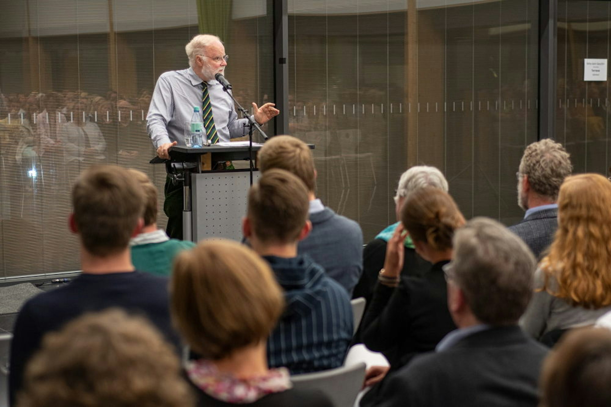 Gastdozent Dr. Franziskus von Heereman von der Philosophisch-Theologischen Hochschule Vallendar hatte Zehntklässler nach dem Sinn des Lebens gefragt – und beachtliche Antworten erhalten: Ein sinnloses Leben sei laut Schülersicht durch Einsamkeit und Ziellosigkeit geprägt, Sinn gäben dagegen Familie, Freunde, stabile Beziehungen.