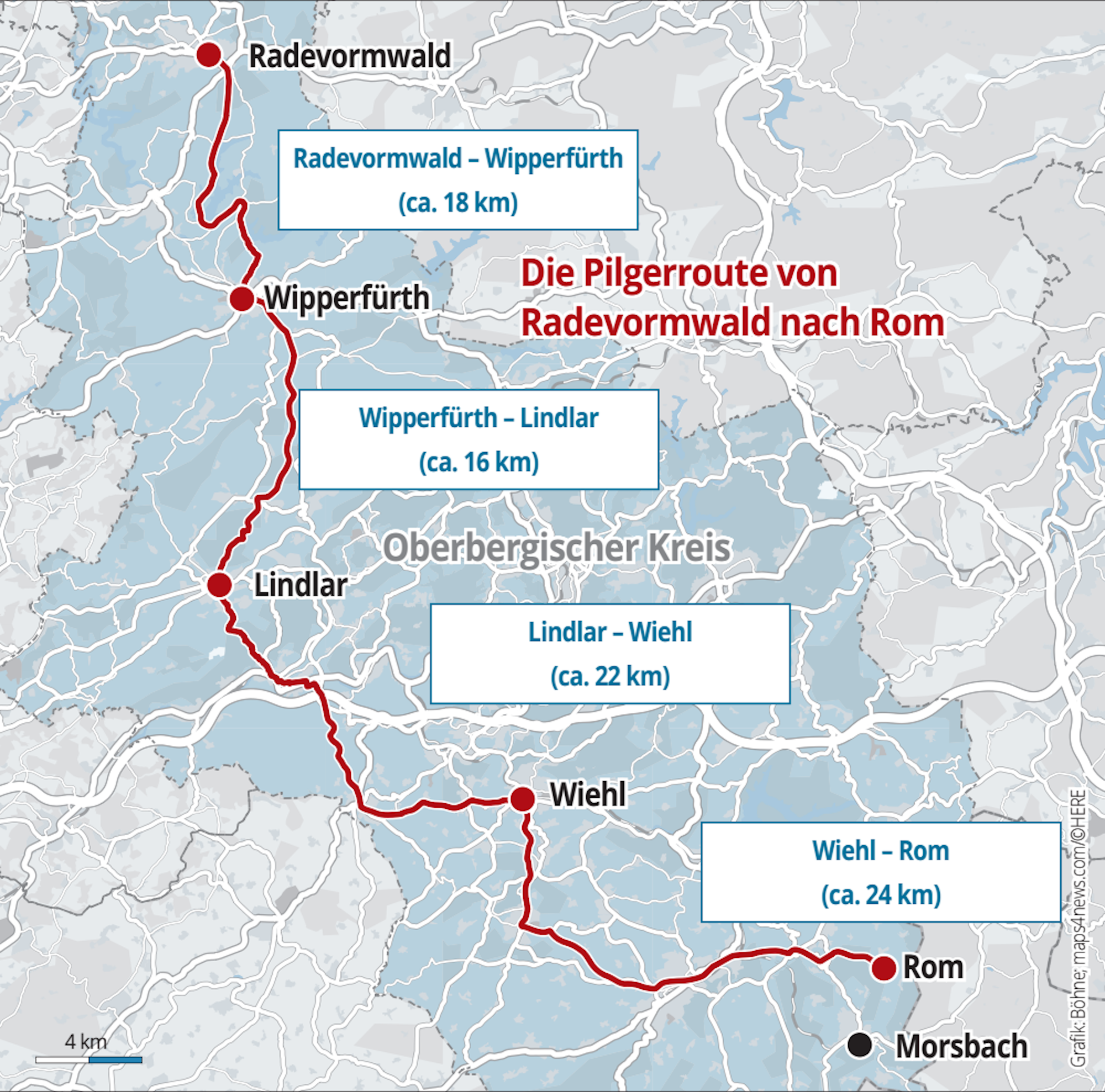 Die Pilgerroute von Radevormwald bis nach Rom.