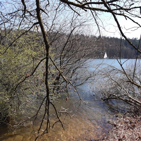 Die Nachbarhofstelle namens Berghäuschen liegt schon auf Lindlarer Gemeindegebiet. Ich wandere durch Bühlstahl und um den 323 Meter hohen Vogelberg herum. Zur Rechten entdecke ich auf einer Weide seltsame Tiere, die wirken wie eine Mischung aus Reh und Schaf. Es müssen Mufflons sein. Von diesen Wildschafen, die eigentlich auf Korsika und Sardinien zu Hause sind, gibt es im Raum Engelskirchen und Lindlar ein paar freilebende Rudel.