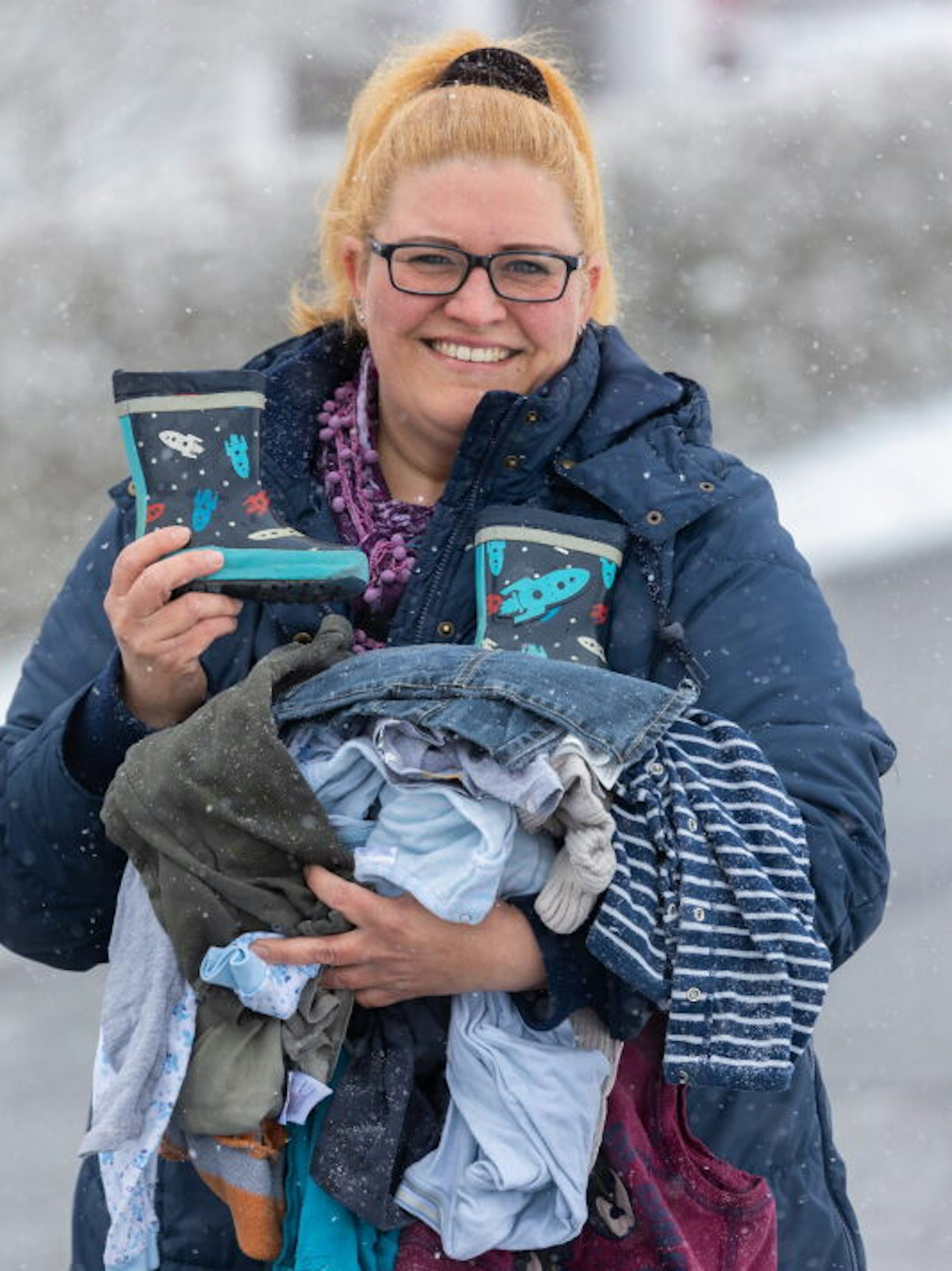 In solchen Momenten ist die 38-Jährige froh, dass sie an ihrer Idee festgehalten hat, für Familien in Not ehrenamtlich mit gespendeter Kinderkleidung, Kinderautositzen, Kinderwagen zu helfen – alles Dinge, die für manche zu teuer sind. „Das fiel mir schon in den Krabbelgruppen auf, wie groß die Not bei manchen Kindern ist“, erzählt die alleinerziehende Mutter von zwei Jungs, zwei und sechs Jahre alt. „Auf der anderen Seite gibt es Leute, die werfen fast neue Sachen weg. Ich dachte, da muss sich doch nur einer hinstellen und was tun.“