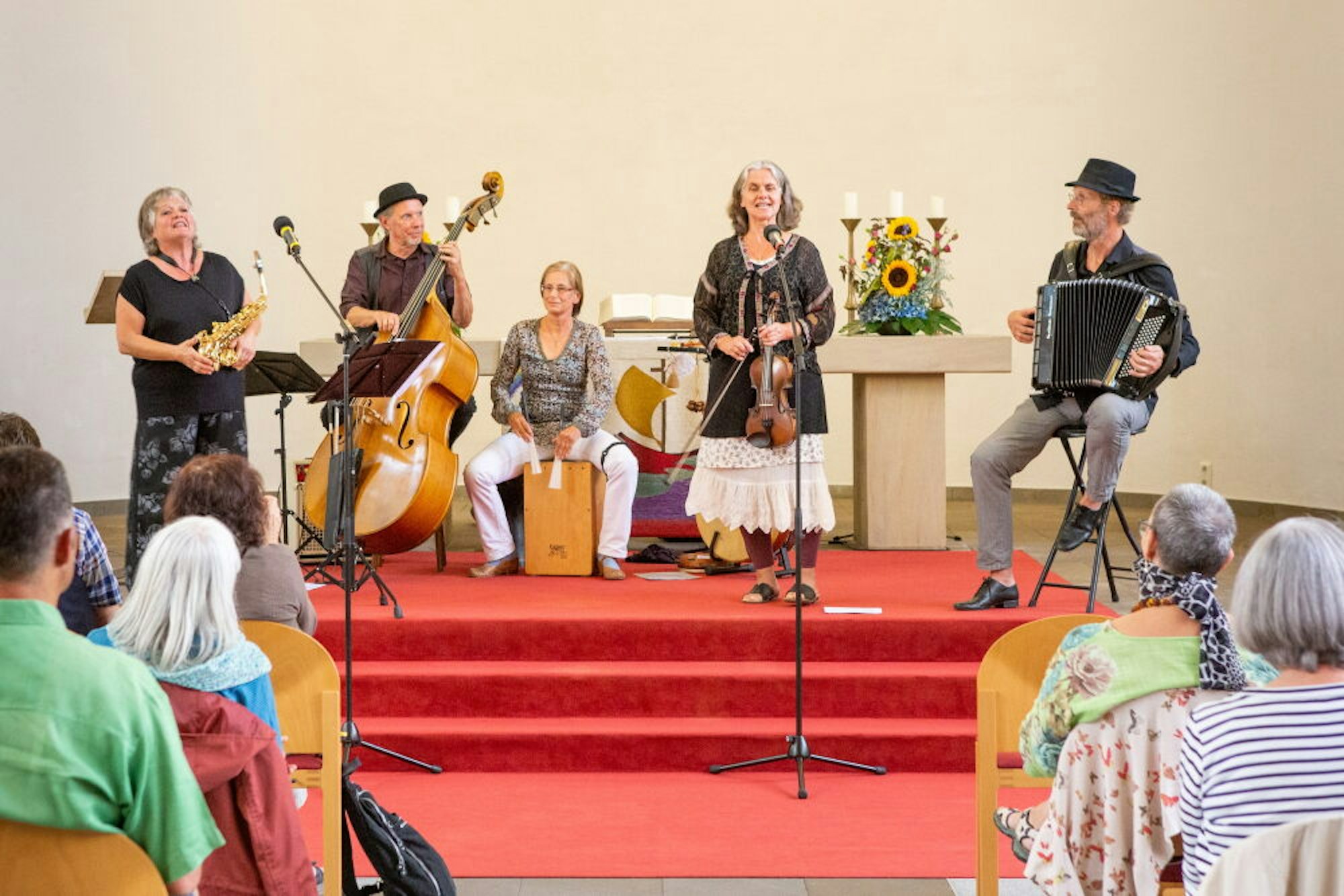 Das Hückeswagener Quintett hat sich ganz der osteuropäischen Musik verschrieben. Von Mazedonien bis zum Schwarzen Meer, vom russischen Shtetl (Dörfchen) zum jiddischen Theater am Broadway und zurück nach Odessa führt ihre musikalische Reise, die in Waldbröl wegen des Zeitlimits nur ein Kurztrip werden konnte. „Sie hätten gerne noch Zugaben gegeben“, schätzt Kantor Salzmann, „es war ein Erlebnis.“