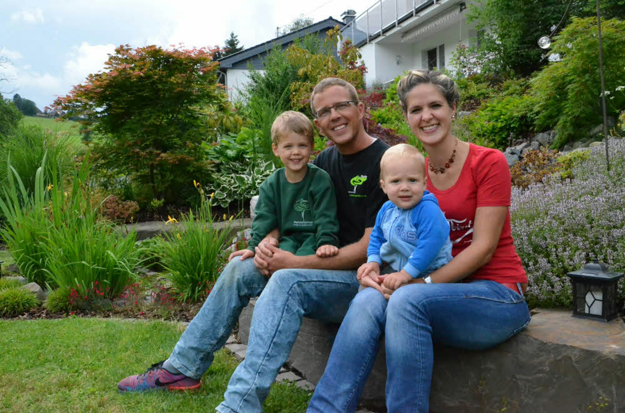 „Blühende Visionen“ mit viel Raum zum Spielen haben Dennis und Ela Thiele, hier mit den Söhnen Felix (l.) und Michel, geschaffen.