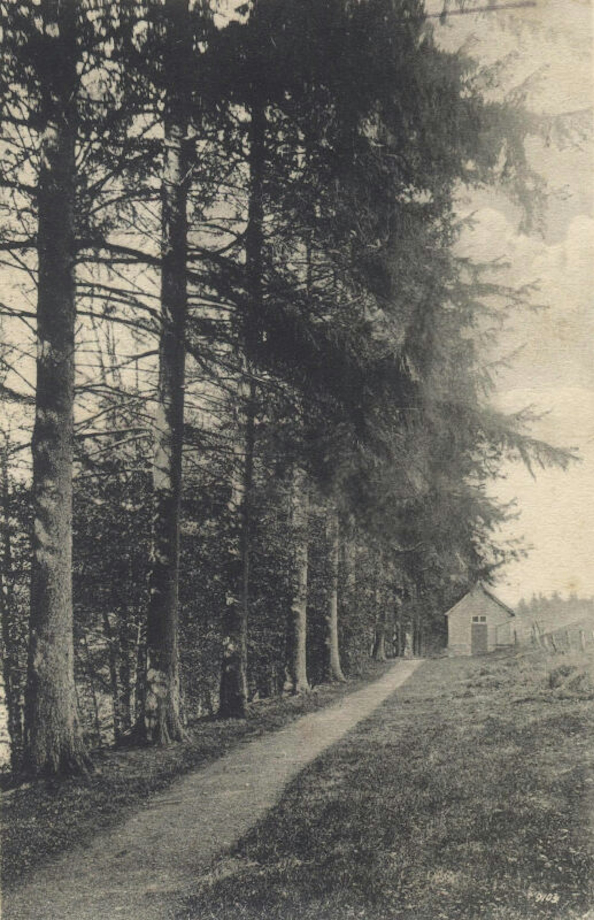 Die Straße in Ohl, die auf dieser Ansichtskarte von 1910 noch als „Promenadenweg“ vorgestellt wird, heißt heute Neuenhammer. Benannt ist sie nach einem ehemaligen Hammerwerk an der heutigen B 237, dessen Wasserräder von der Kerspe angetrieben wurden; zu diesem Zweck wurde 1774 ein rund 1500 Meter langer Obergraben mit Teich angelegt.