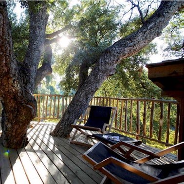 Panoramablick inklusive: Übernachten im Baumhaus, hoch über den bergischen Wiesen.