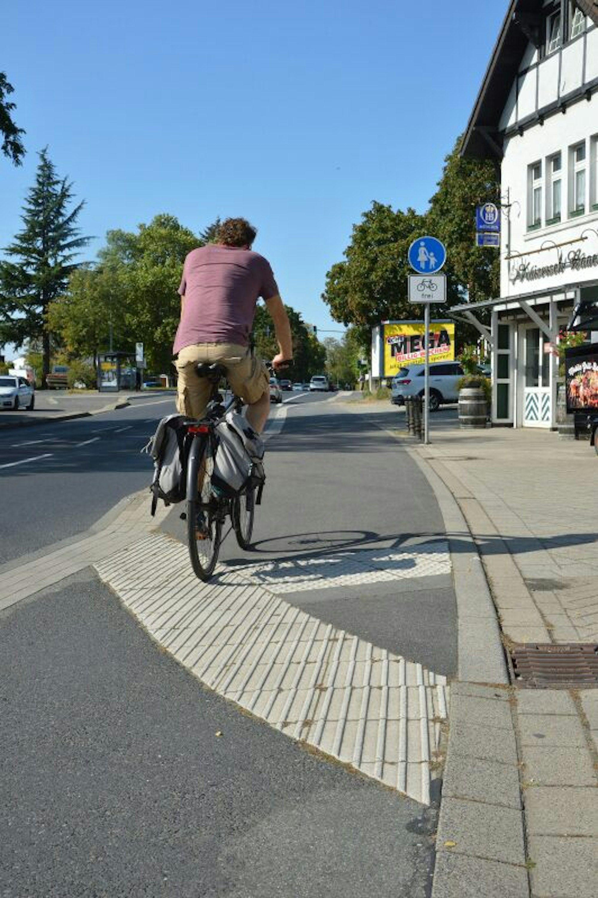 Bergisch Gladbach – Fahrradfahren in Bergisch Gladbach ist gefährlich. Die Radwege sind – sofern überhaupt vorhanden – in meist schlechtem Zustand. Der Radweg entlang der Bensberger Straße ist vergleichsweise ein echtes Paradies für Radler – wenn da die Bushaltestelle und Kreuzungsbereiche nicht wären. Das Blindenleitsystem kann für Radfahrer gefährlich werden. Für Blinde ist es verwirrend.