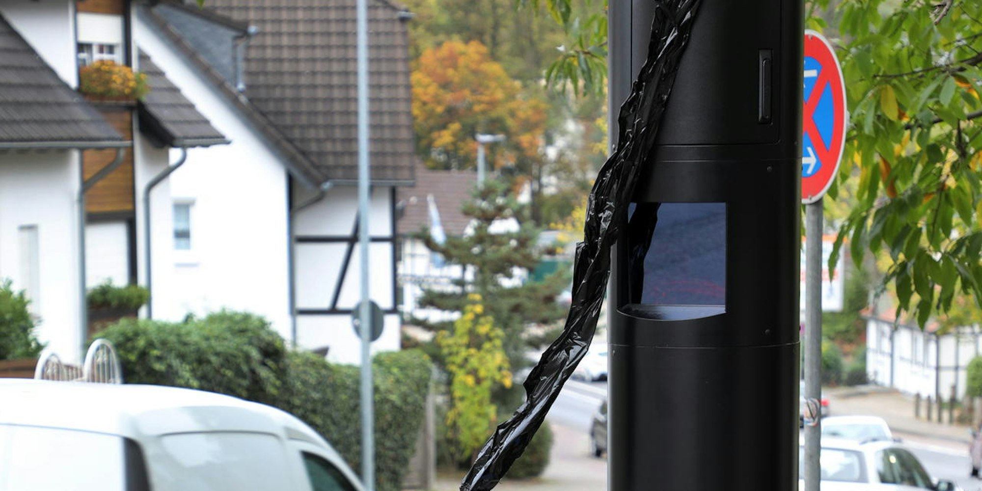 Frisch aus der Verpackung: Einer der neuen Blitzer in Bergisch Gladbach.