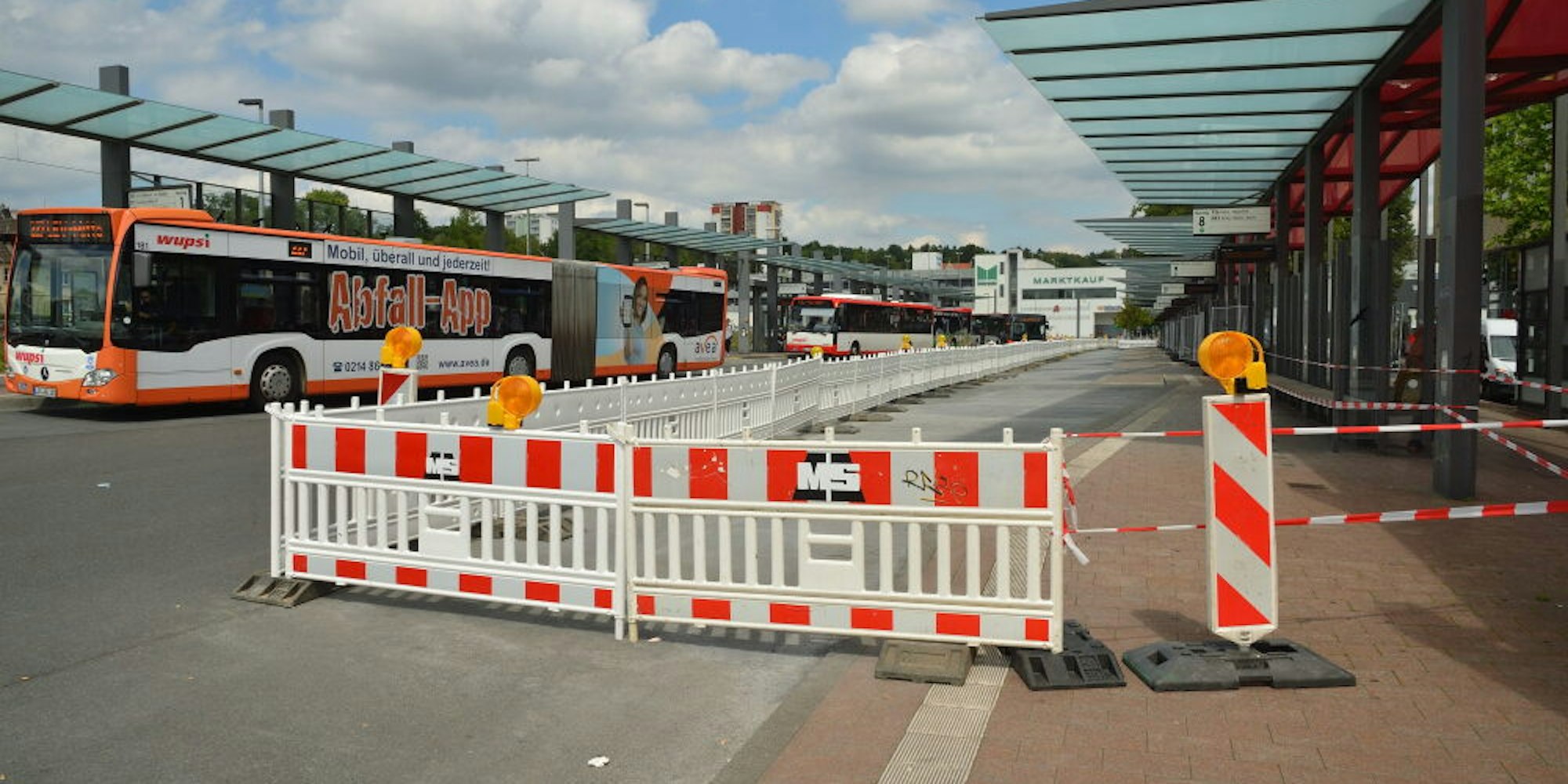 Die Sanierung der Asphaltflächen an den Bussteigen 8 bis 14, an denen sich im Laufe der Jahre tiefe Rillen gebildet hatten, sei zwar abgeschlossen, der Asphaltbeton aber benötige nun noch Zeit zum Aushärten, damit nicht nach kurzer Zeit erneut Schäden aufträten. „Bei der am Busbahnhof verbauten Schicht sind etwa vier Wochen vonnöten, bis die erforderliche Belastbarkeit erreicht wird“, erläutert Stadtsprecher Martin Rölen.