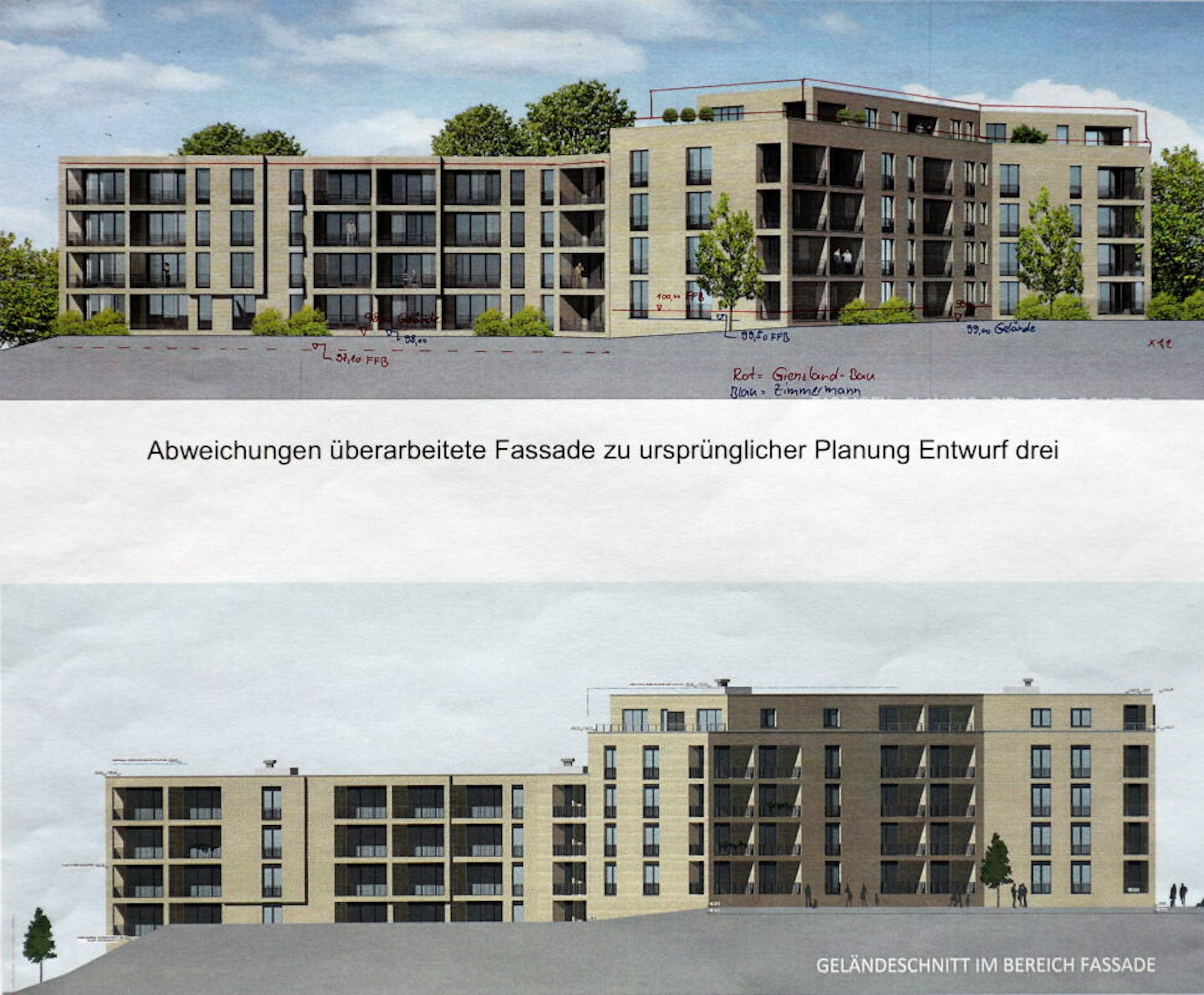 Zimmermanns Fassaden-Entwurf solle als Grundlage für den Bauantrag dienen, empfahlen die Fachleute nach der jüngsten Beratung im Mai und wünschten dem Projekt gutes Gelingen. Der Entwurfs-Empfehlung schloss sich der Bauträger an. Im Juni reichte er einen Bauantrag bei der Stadt ein.