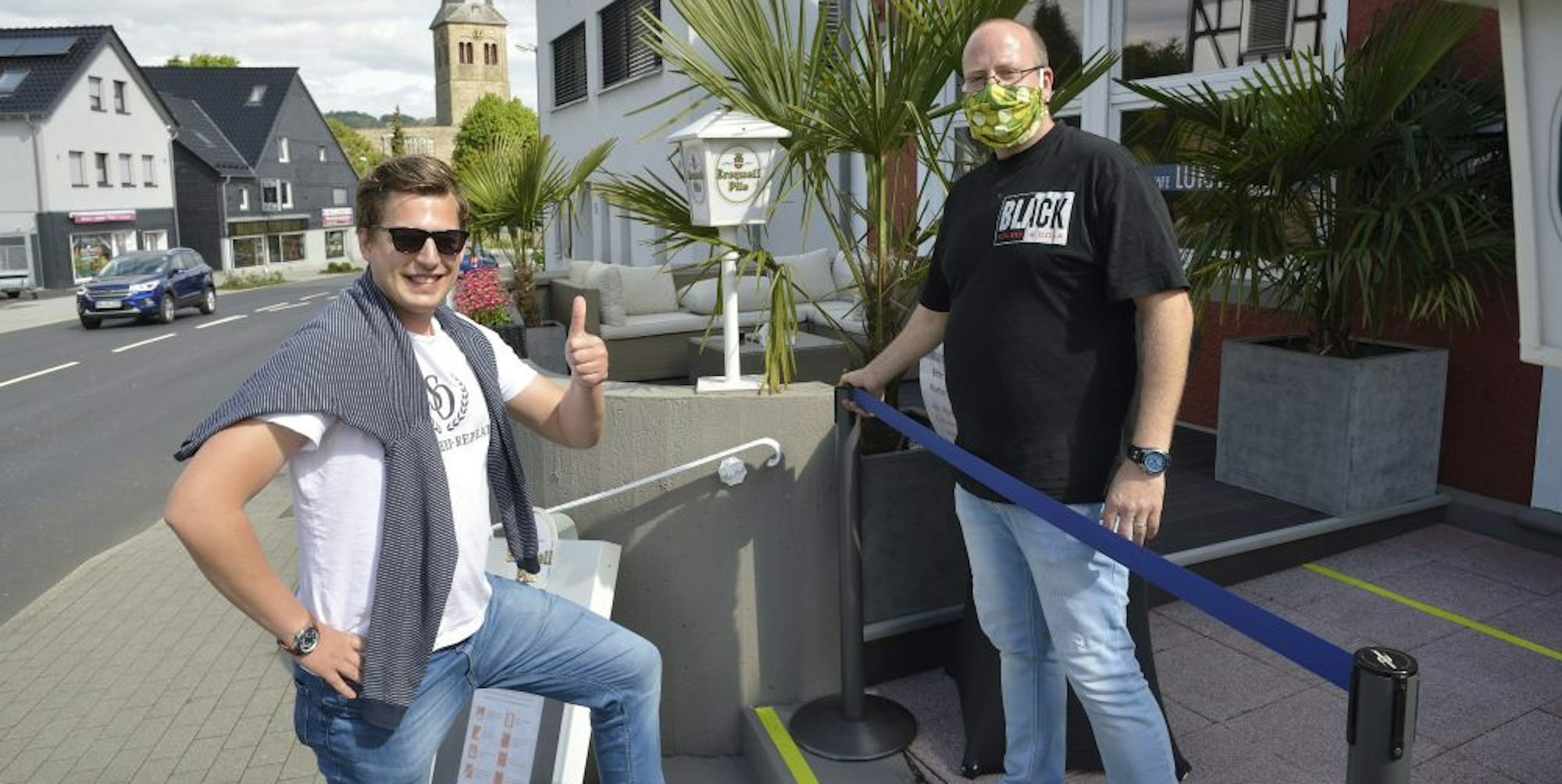 Jürgen Steinhauser vom Café Lukas in Overath war am Montag froh, dass das Ordnungsamt seine Hygienemaßnahmen abgesegnet hatte und voller Elan, wieder durchzustarten. „Wir machen eine Stunde früher auf als gewohnt und hoffen, dass unsere Gäste unsere Anstrengungen honorieren.“