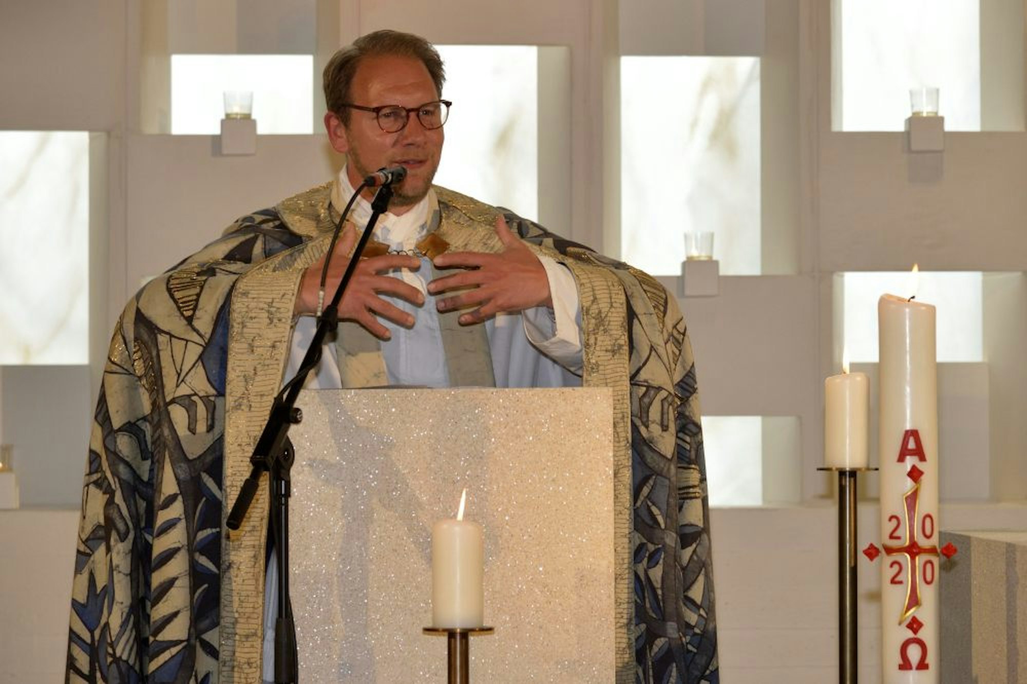 Trotzdem sei es ein eigenartiges Gefühl, vor unbesetzten Reihen zu sprechen. „Da wird die Leere im Dom schmerzlich spürbar.“ Immerhin war mit Rebecca Knecht ein Mitglied aus dem Initiativkreis Altenberger Licht dabei; Julius Teders am Klavier sowie der vom Band eingespielte Projektchor sorgten für die musikalische Umrahmung – genauso wie bei der Aussendungsfeier am Morgen des 1. Mai. „Heute ist es nüchterner“, meinte Schwaderlapp; die Feier sei auch ein Moment der Askese.