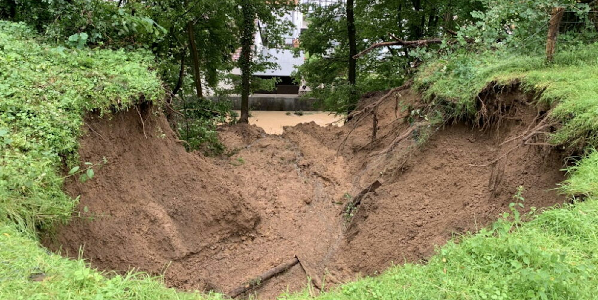 Was einmal ein Hang am Mühlenweg war, ist seit der Flut im Juli nur noch ein Loch. Jetzt Rücken die Bagger an.