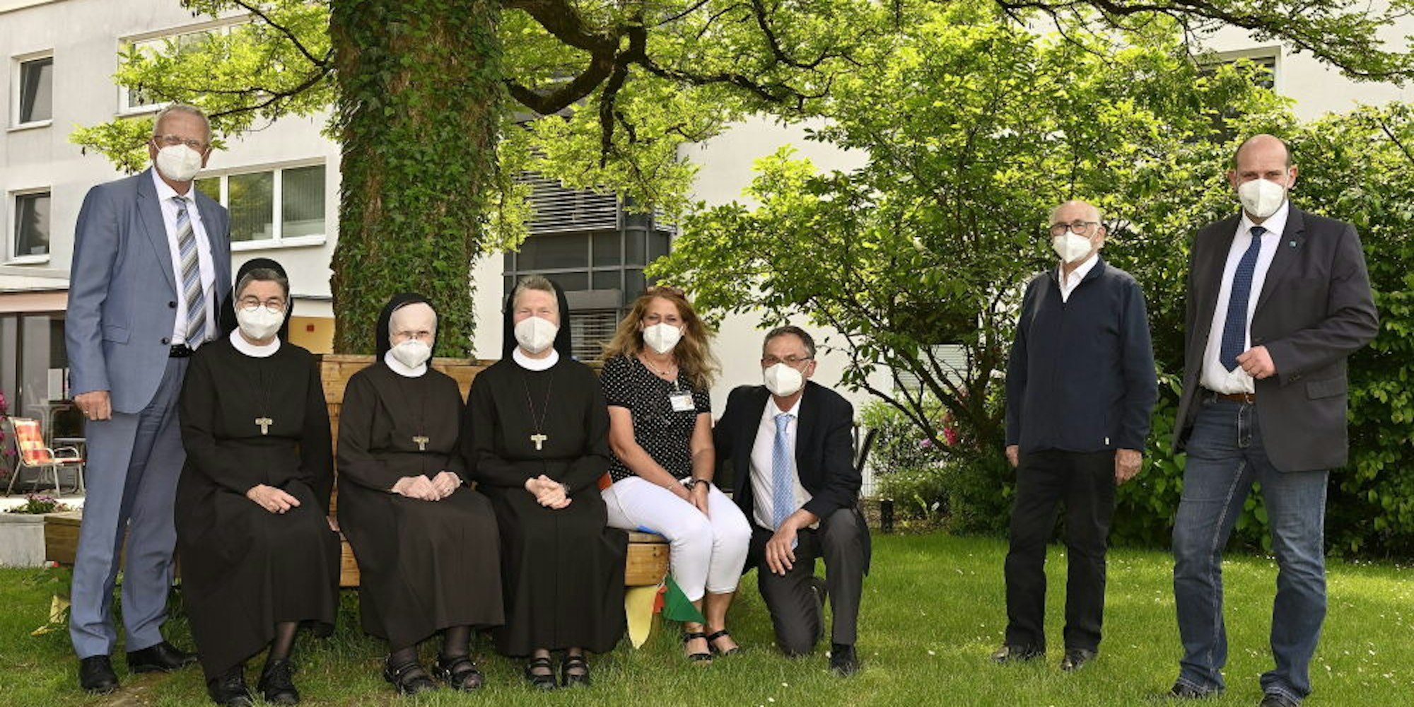 Im Garten des Malteserheims Marialinden wurde Schwester Susanne (4.v.l.) verabschiedet.