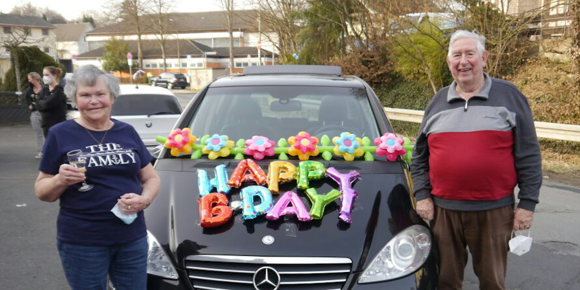 Hildegard und Helmut Häck freuen sich über die ganz besondere Geburtstagsgratulation zum 80sten.