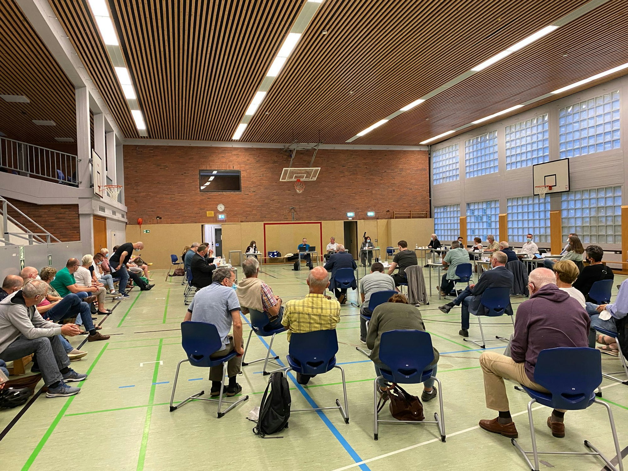 Zahlreiche Bürgerinnen und Bürger verfolgten die Sitzung des Zukunftsausschusses in der Turnhalle des Freiherr-vom-Stein-Gymnasiums und durften ihre Fragen stellen.