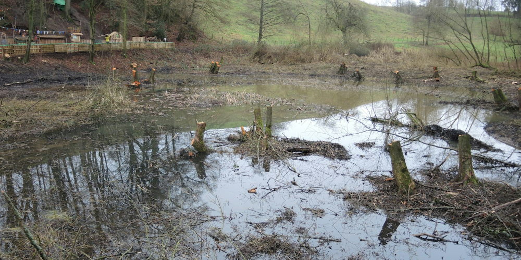 Die im Teich verbliebenen Baumstümpfe werden mit Rücksicht auf die dort überwinternden Tiere erst im September entfernt. Nach einer ebenfalls zu dieser Jahreszeit geplanten Entschlammung, ist der Lebensraum für Frösche und Kröten zumindest für die nächsten Jahre erst einmal wieder gesichert.