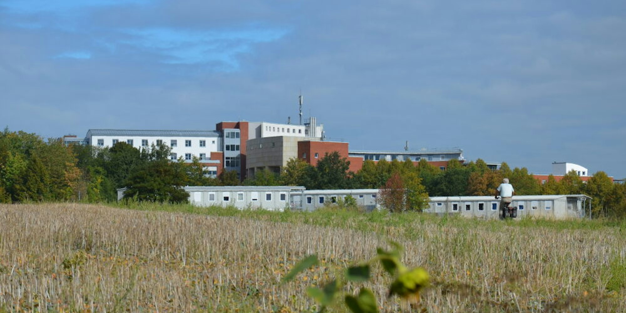Auf einem Teil der Felder unmittelbar an der Bundeshochschule will ein Investor den Heider-Bergsee-Campus errichten. Gegen das Projekt regt sich Widerstand.