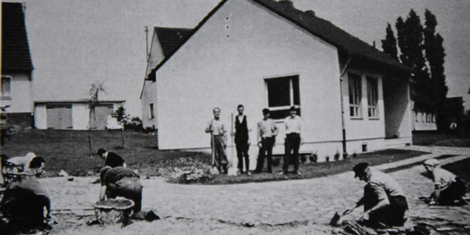 Unter anderem bei Pflasterarbeiten packten die Gemeindemitglieder 1960 kräftig mit an.