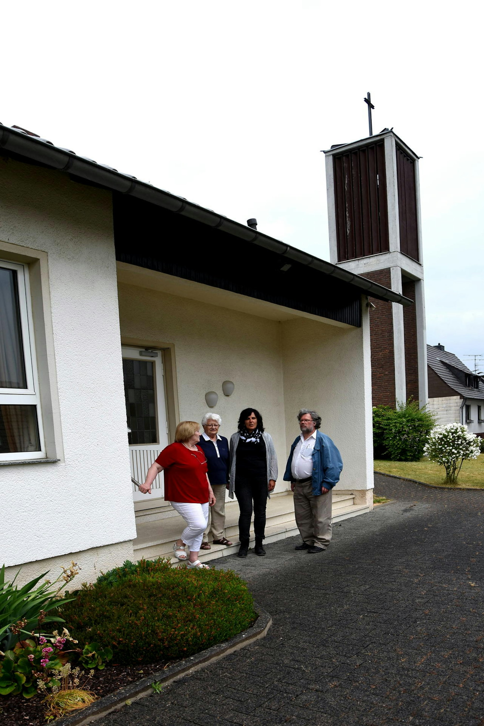 Gisela Müller, Waltraud Dennhoven, Elke Friedt und Jochen Gruch vor der Kirche.