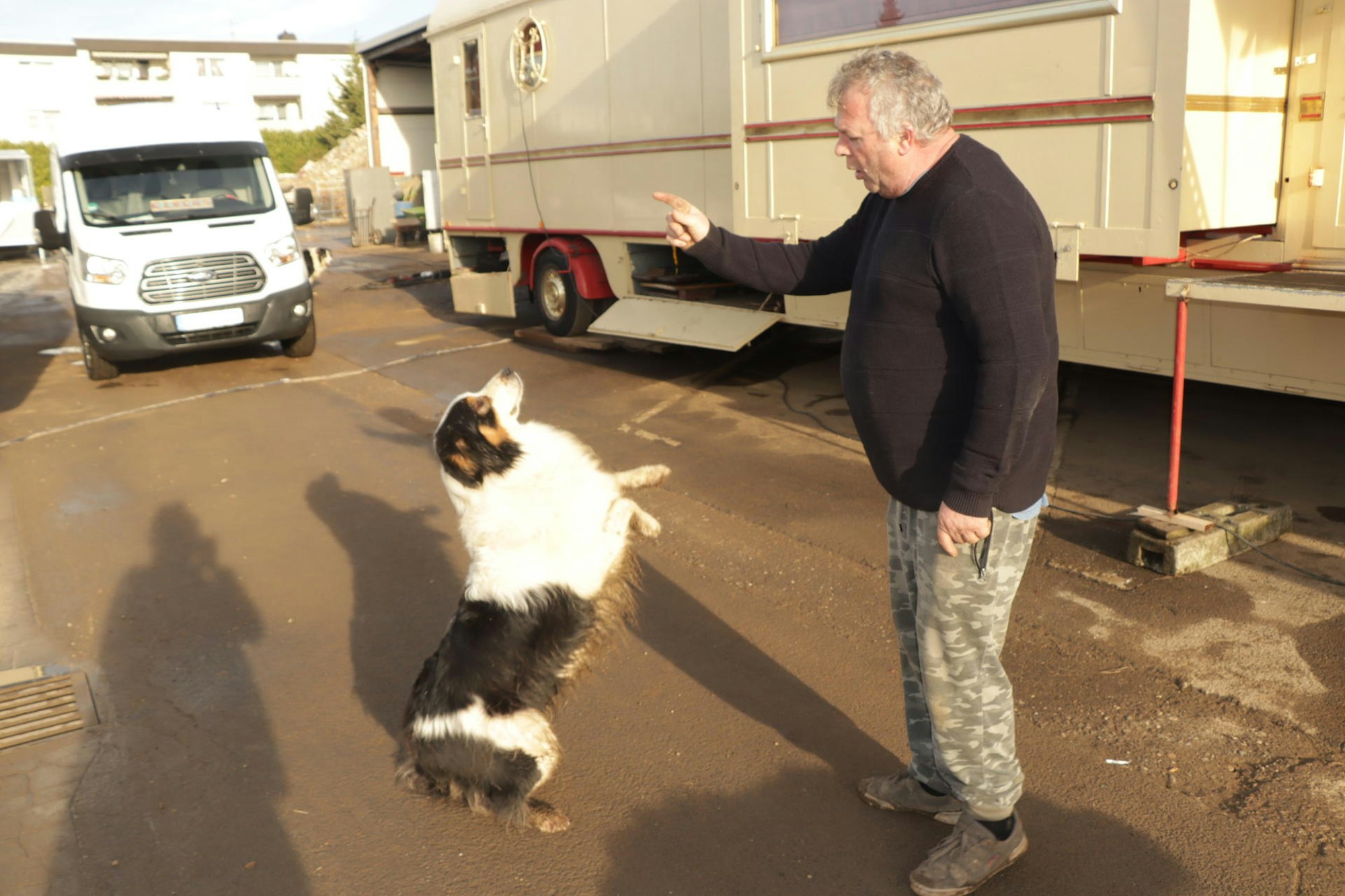 Zirkusdirektor Eugen Neigert muss nur mit den Finger schnippen und seine Hunde stellen sich auf die Hinterpfoten.