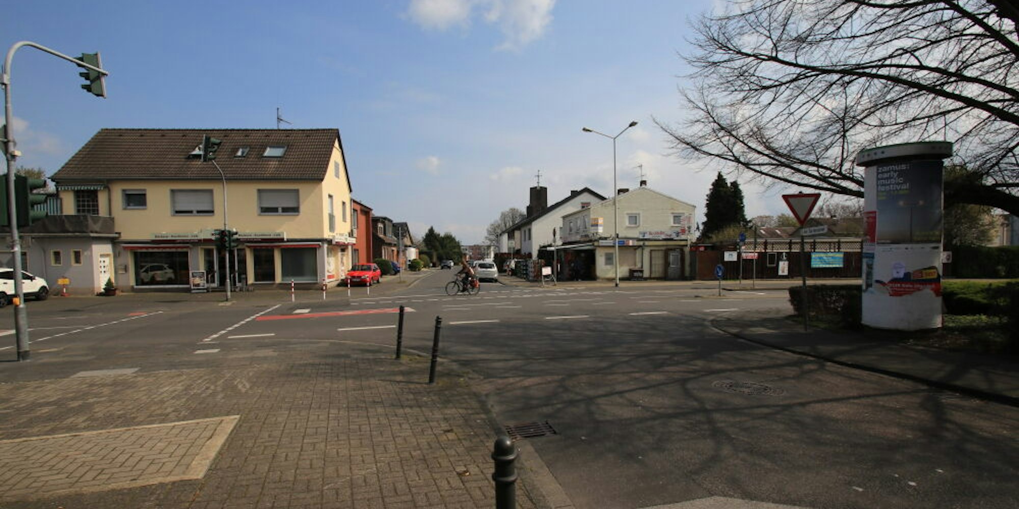 Die Kreuzung der Ulrichstraße mit der Burghofstraße möchten die Planer aufpflastern und im Norden der Kurve in Richtung Königsdorf eine Mittelinsel anlegen, über die Radfahrer und Fußgänger sicher auf die andere Straßenseite geführt werden könnten. Auch sollen die Fahrbahnen hier zugunsten der Außenflächen etwas verengt werden.