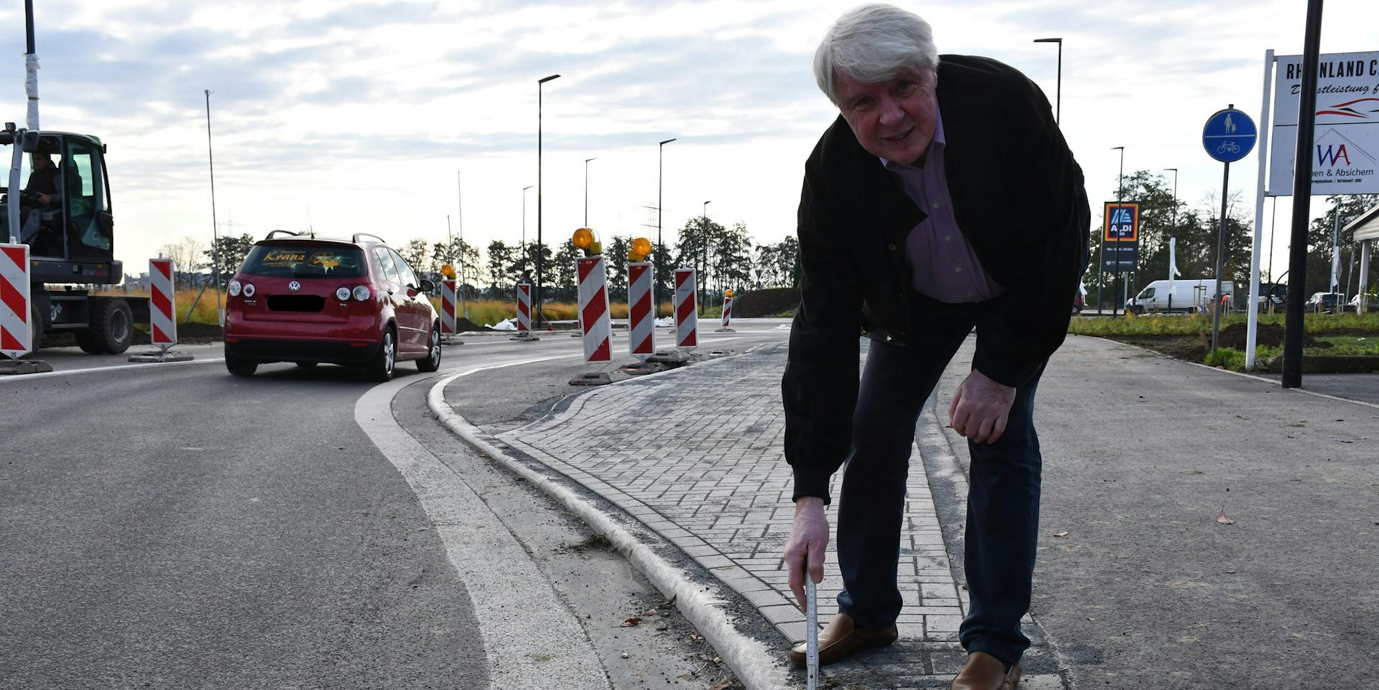 Anwohner Hans-Peter Klie beschwert sich vor der Eröffnung des neuen Aldi-Marktes in Hürth bei der Stadt.