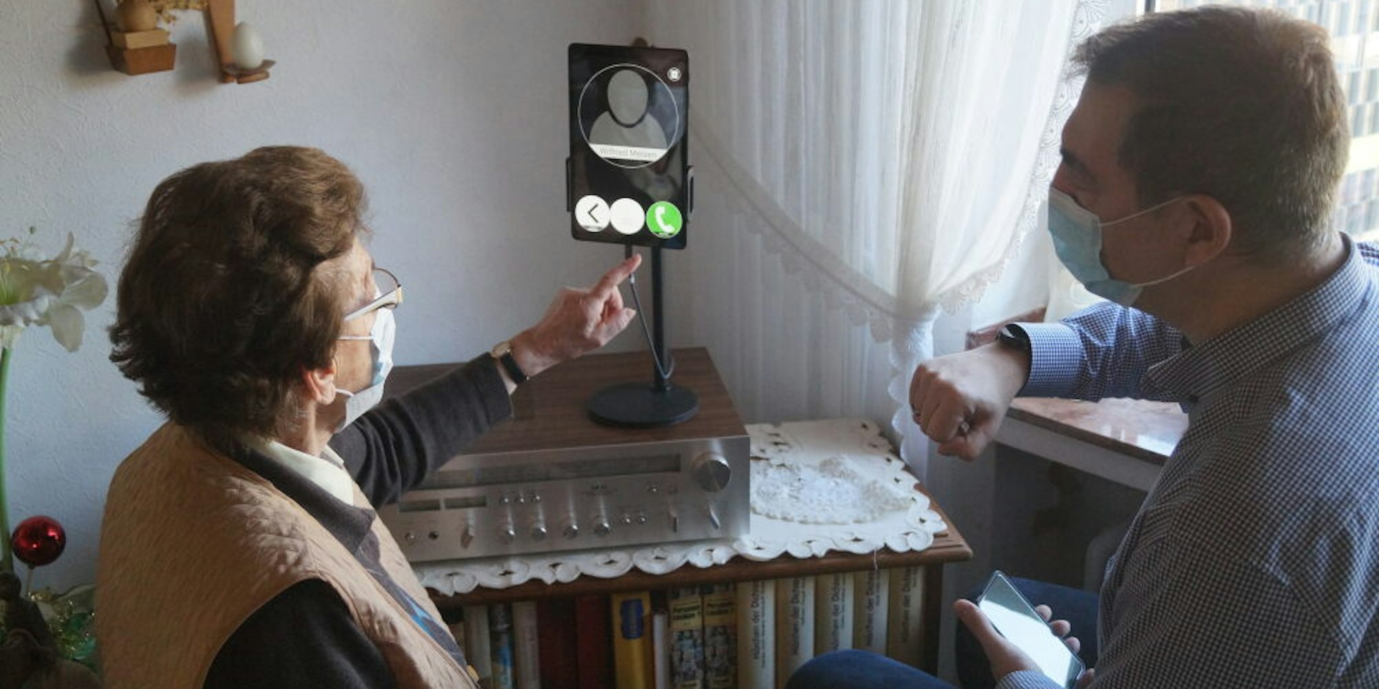 Dazu erhalten die Teilnehmer ein Tablet mit Stativ, das von dem Unternehmen eingerichtet wird. Gebraucht werden daneben nur noch ein WLAN-Netz und eine Steckdose. Die jeweiligen Adressaten, die angerufen werden sollen, sind per Dauerbetrieb per Foto auf dem Bildschirm zu sehen. Das entsprechende Bild muss nur angetippt werden, schon baut sich die Verbindung auf und das Videogespräch kann beginnen.